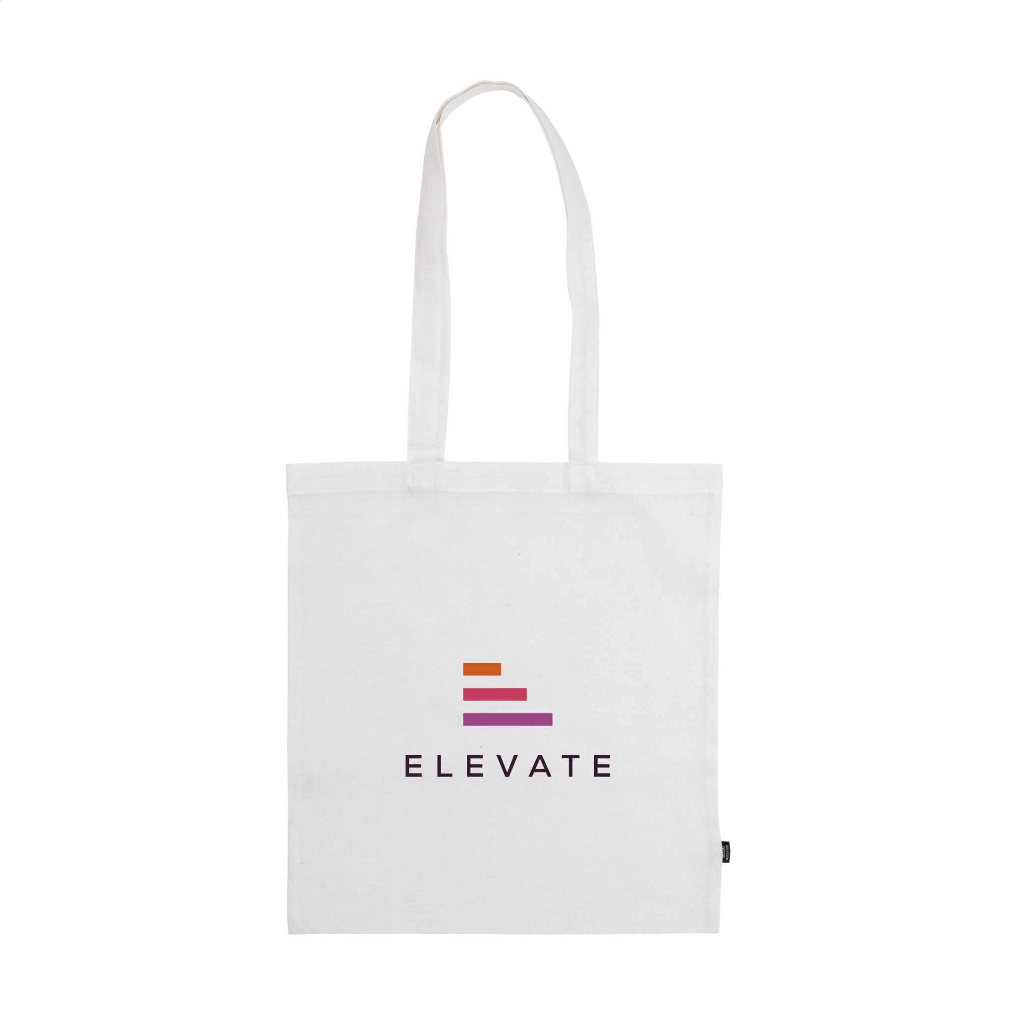WoW! Shopping bag with long handles made from 80% recycled cotton and 20% recycled polyester (150 g/m²). GRS-certified. Total recycled material: 100%.