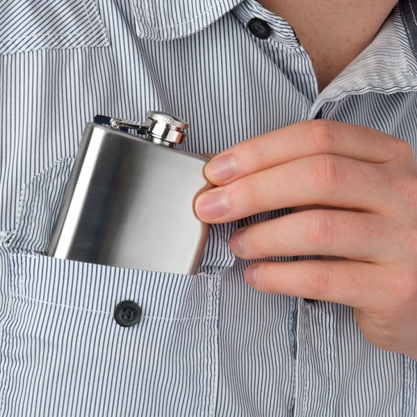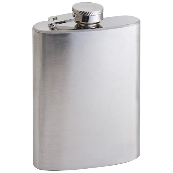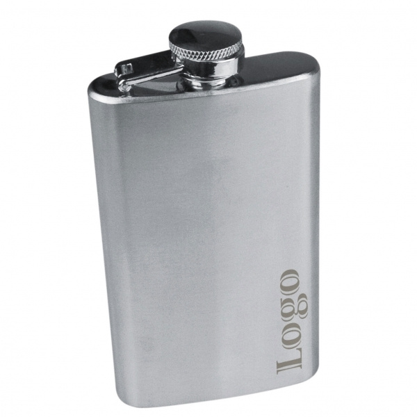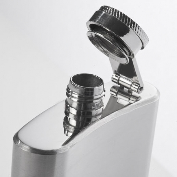 Cheers! Take a sip en route! Hip flask made of stainless steel with a safety twist cap and a capacity of 104 ml. The ideal present on which your logo will be laser engraved. Each hip flask is packed in a single cardboard box.