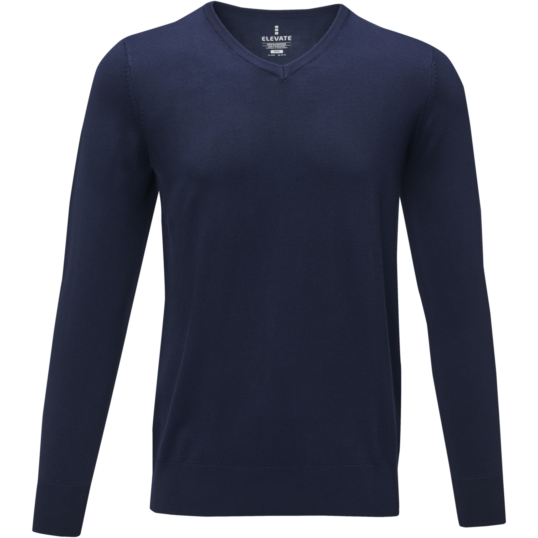 The Stanton men's v-neck pullover – a perfect blend of sophistication and a classic v-neck design. The flat knit rib collar, cuffs, and bottom hem not only elevate its aesthetic appeal but also offer lasting comfort. Made from a blend of viscose and nylon in a 12-gauge flat knit, this pullover strikes the perfect balance between style and functionality. This fine gauge results in a fabric that's smoother and more refined, perfect for both formal occasions and elevating your everyday ensemble.