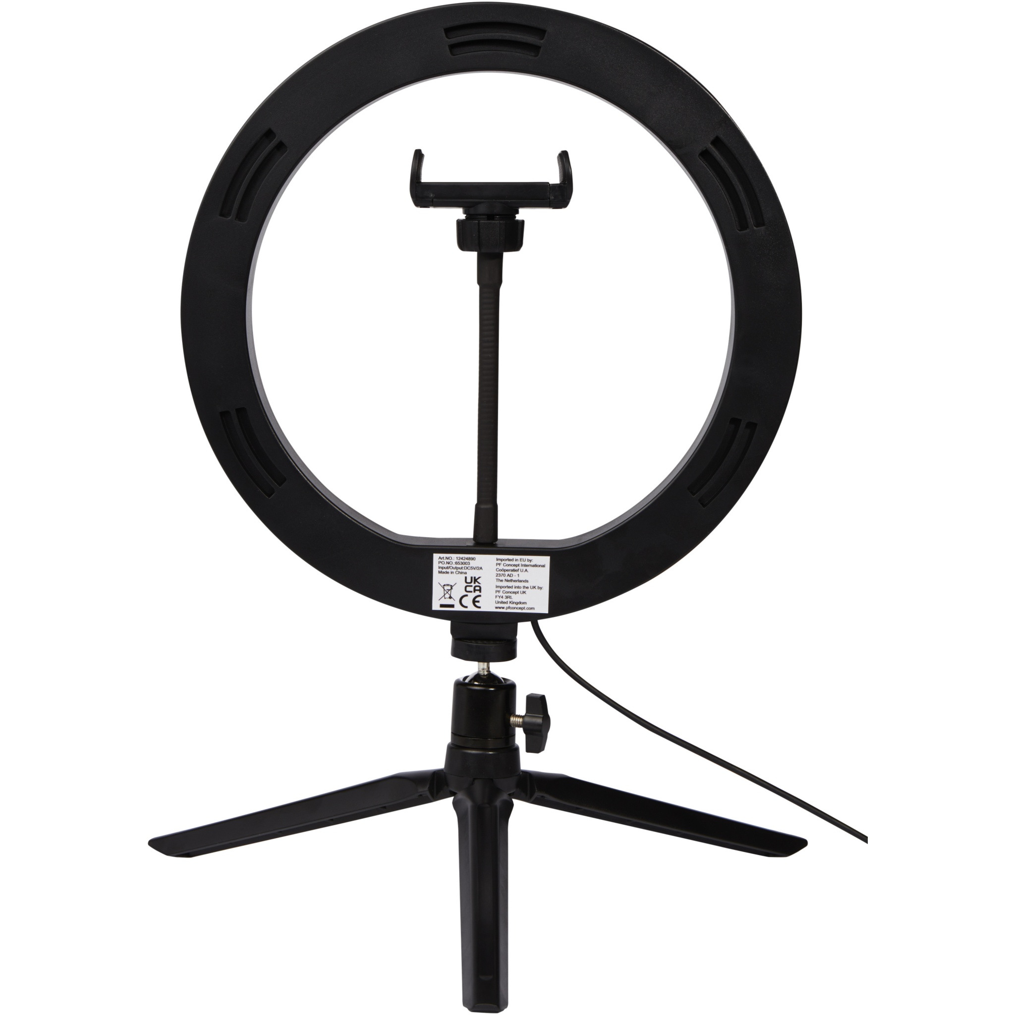Studio ring light for selfies and vlogging with phone holder and tripod, Solid black