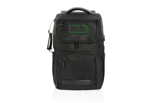 Make the daily commute a little bit easier and a lot more stylish with this laptop backpack. The bag is made from durable 1680D recycled polyester fabric with rich PU details and features a well designed shape with multiple pockets for storage and organisation. In addition to the roomy main compartment, this backpack features a padded 15.6" laptop pocket and an additonal zipper pocket to hold your other daily essentials. Other features of this backpack include a USB output, RFID pockets, pen loops, a detachable luggage tag and a side water bottle pocket. Exterior: 100% 1680D polyester / Lining: 150D recycled polyester. With AWARE™ tracer that validates the genuine use of recycled materials. Each bag has reused 49.92 0.5L PET bottles. 2% of proceeds of each product sold containing AWARE™ will be donated to Water.org.