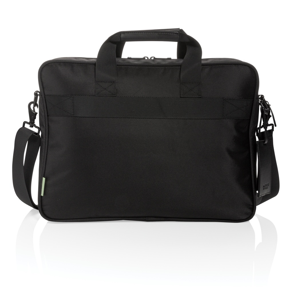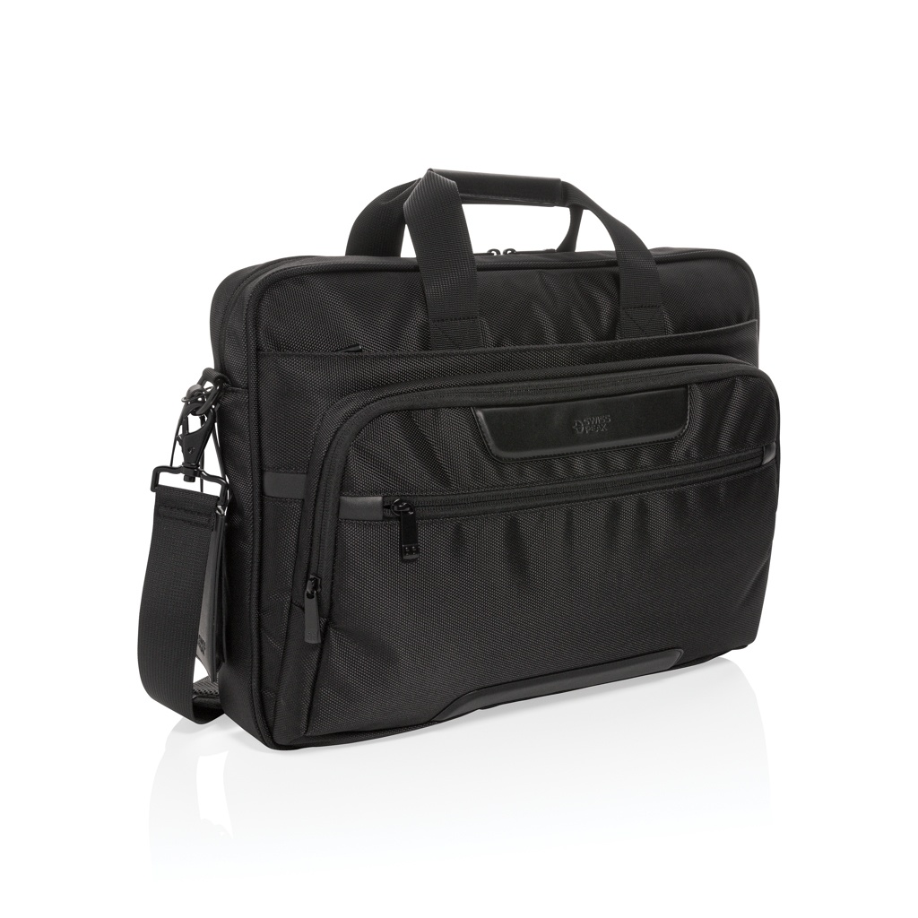 Make the daily commute a little bit easier and a lot more stylish with this laptop bag. The bag is made from durable 1680D RPET polyester fabric with rich PU details and features multiple pockets for storage and organisation. In addition to the roomy main compartment, this bag features a padded 15.6" laptop pocket and an additional zipper pocket to hold your other daily essentials. Other features of this bag include an USB output, RFID pockets, pen loops and a detachable luggage tag. Exterior:100% 1680D polyester / Lining: Regular 210D polyester