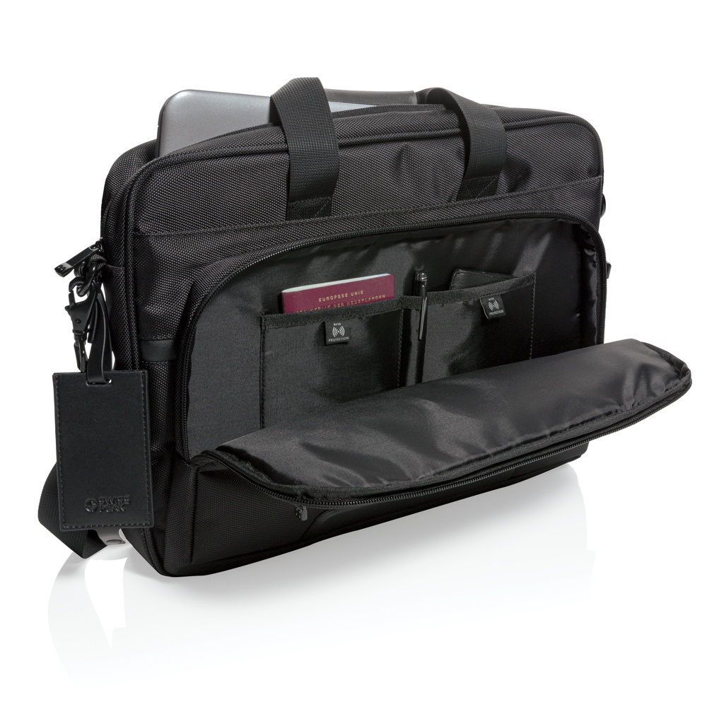Products All products Swiss Peak RPET Voyager RFID 15.6" laptop bag