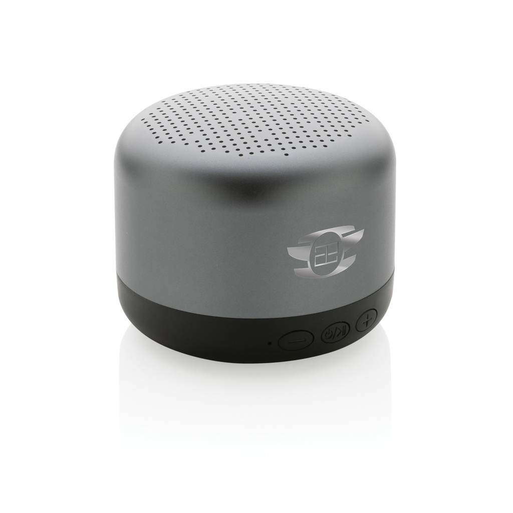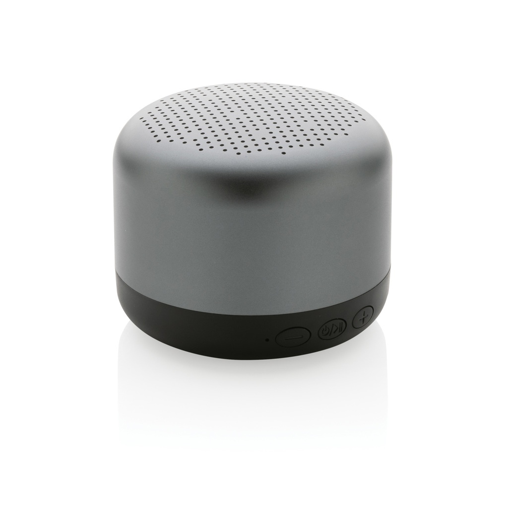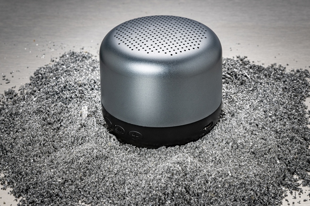 5W wireless speaker made with RCS (Recycled Claim Standard) certified recycled aluminium and ABS. Total recycled content: 35% based on total item weight. RCS certification ensures a completely certified supply chain of the recycled materials. Aluminium does not lose its characteristics in the recycling process and can be recycled endlessly. Including recycled type C charging cable made from RCS certified recycled aluminium, TPE and PET. Packed in FSC® mix packaging. The 600 mah battery allows a playtime up to 4 hours and can be fully re-charged in 2 hours. With BT 5.0 for smooth connection up to 10 metres.