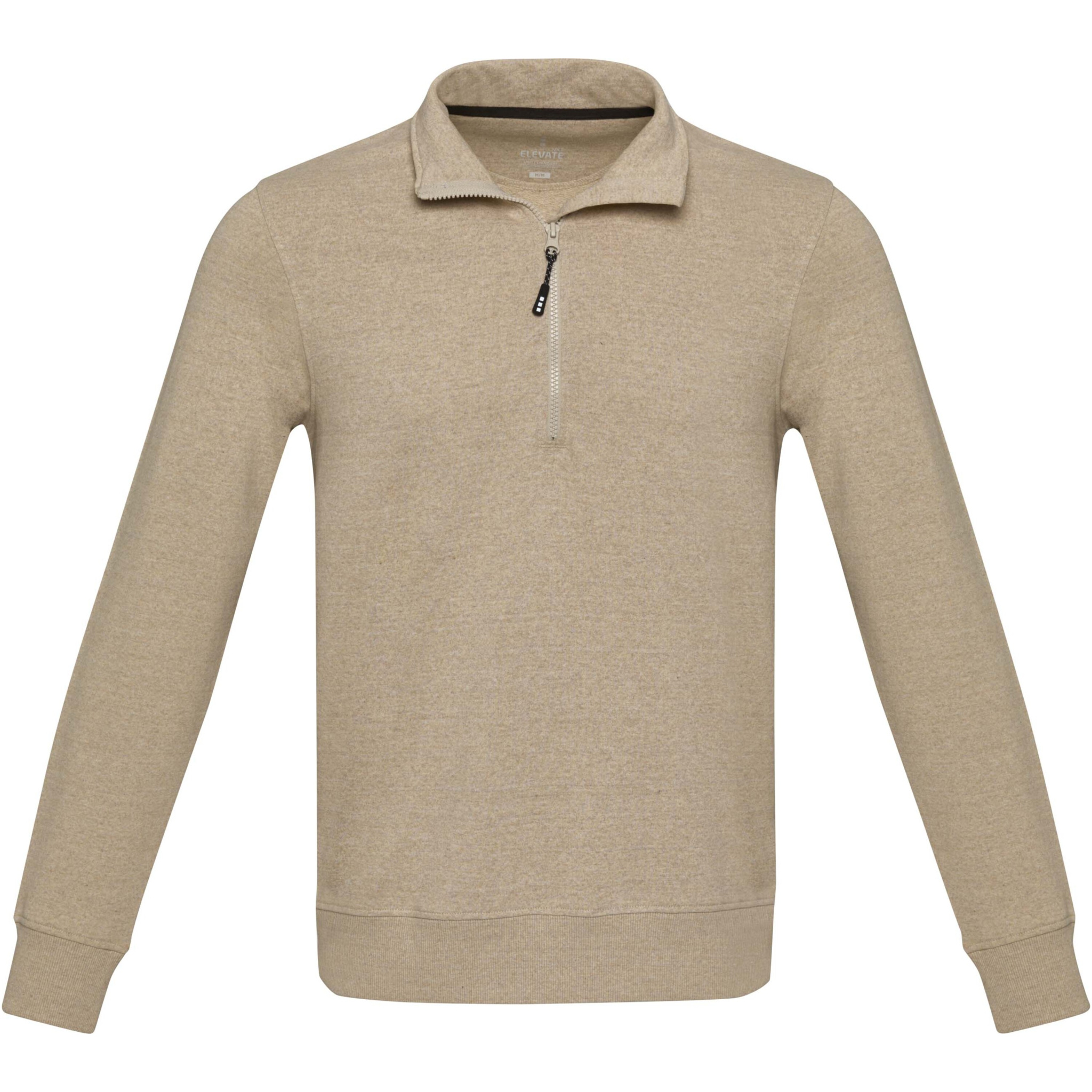 The Tin unisex Aware™ quarter zip sweater is made from 50% organic cotton and 50% recycled cotton. The functional quarter-zip design adds versatility and convenience, allowing you to easily layer the sweater and adjust comfort. The sweater incorporates Cyclo® recycled fibres where they use pre-sorted waste that determines the colour of the yarn. These fibres do not only reduce the demand for virgin resources but also exhibit a commitment to a circular life, embodying the essence of reducing waste and promoting a closed-loop system. Each sweater also comes with an Aware™ tracer. This innovative feature allows users to trace the origins and journey of their item through a QR code, enhancing transparency in the supply chain and fostering a stronger connection between the product and its production process.