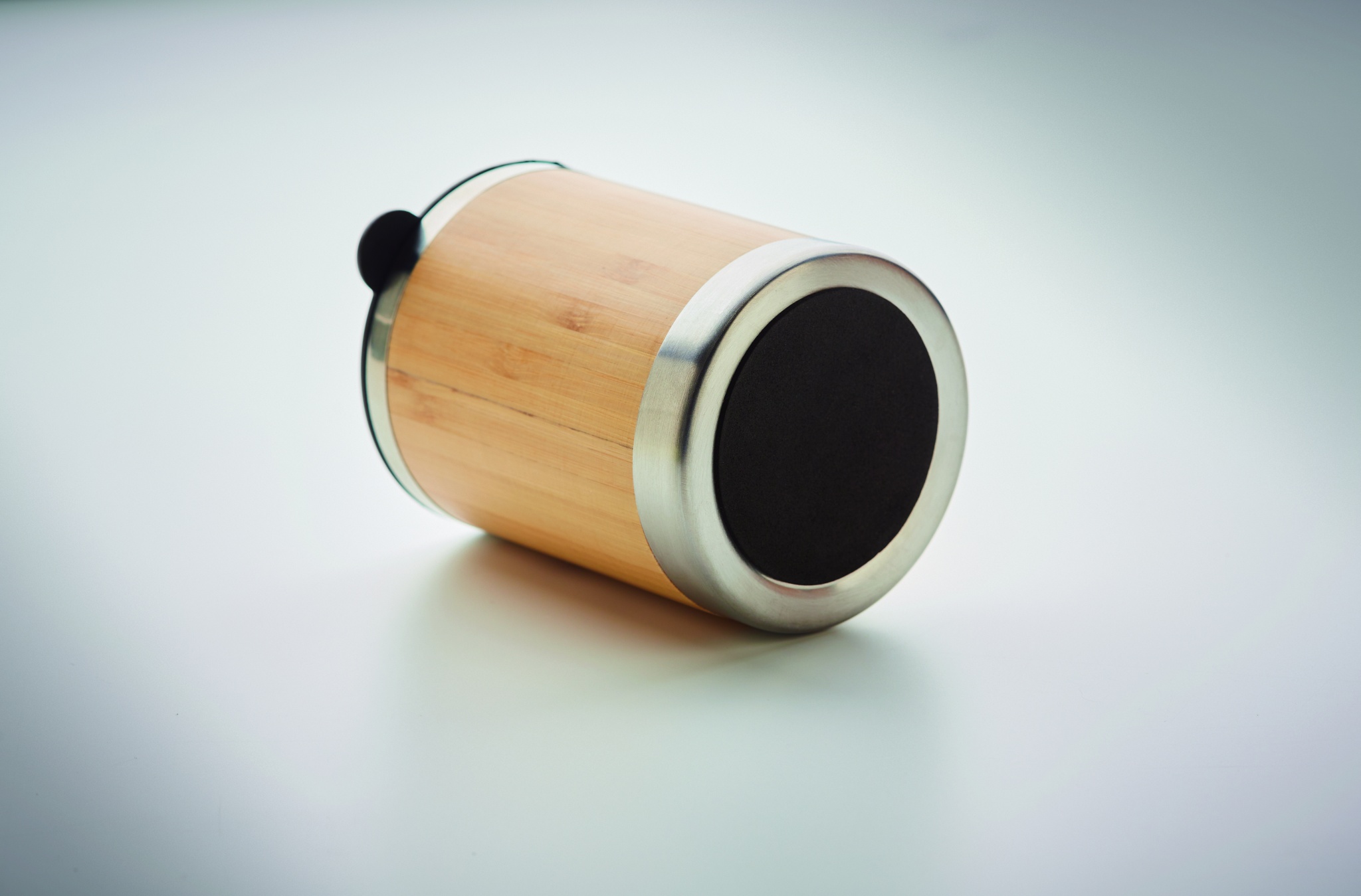 Double walled stainless steel tumbler with bamboo case and moveable drink hole. Capacity 250 ml. Bamboo is a natural product, there may be slight variations in colour and size per item, which can affect the final decoration outcome.