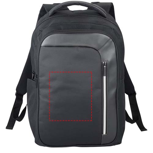 A 15" laptop backpack with multiple pockets, a padded back, and adjustable padded shoulder straps. Equipped with RFID protection and an interior organisation panel, including a key holder. There may be minor variations in the colour of the actual product due to the nature of the fabric dyes, weaves, and printing.