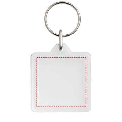 Clear square U1 keychain with metal split keyring. The metal looped ring offers a flat profile which is ideal for mailings. Print insert dimensions: 3,2 cm x 3,2 cm.