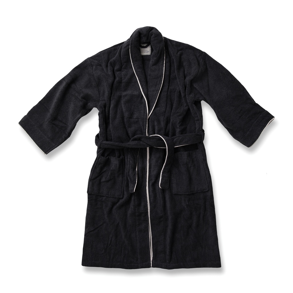 Luxurious robe in 100% cotton. The robe is a classic model with an extra wide collar and belt at the waist. It also has several nice details, such as enclosed seams and contrasting piping on the collar. Made of a long cotton fibre with untwisted threads. The result is an incredibly soft robe that you'll never want to take off.