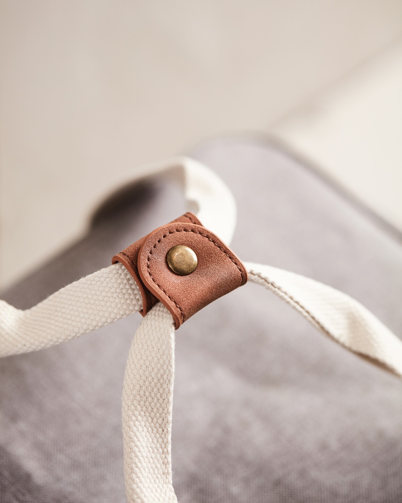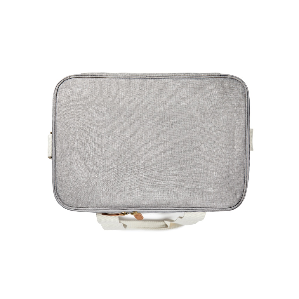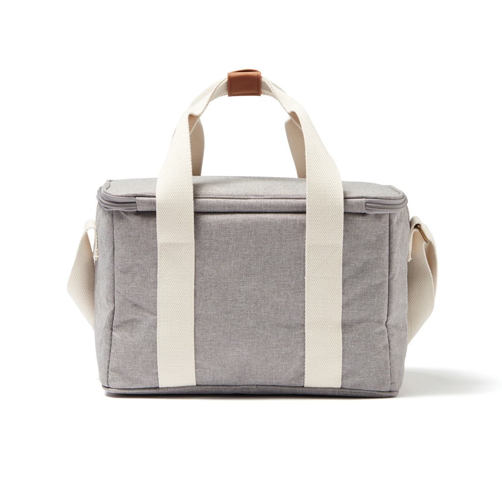 The ultimate cooler basket, mottled tone by tone with details in imitation leather and cotton. There is also a small compartment on the outside of the cooler bag, providing space for other items as well. The thick PEVA padding ensures that the cold is retained for a long time. It is also easy to clean and dry after use. Thanks to the adjustable shoulder strap and the double handle, you have several ways to carry the cooler basket.