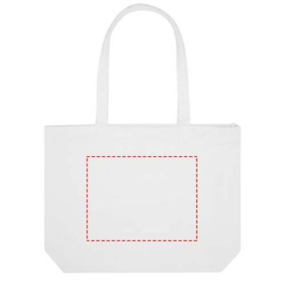With its large capacity, the recycled Weekender tote bag is perfect to bring on a short getaway trip. The tote bag features a full length zipper, ensuring that items remain protected inside. The main compartment also holds a small pocket with zipper to use for smaller items. The tote bag incorporates Cyclo® recycled fibres where they use pre-sorted waste that determines the colour of the yarn. These fibres do not only reduce the demand for virgin resources but also exhibit a commitment to a circular life, embodying the essence of reducing waste and promoting a closed-loop system. Each bag also comes with an Aware™ tracer. This innovative feature allows users to trace the origins and journey of their item through a QR code, enhancing transparency in the supply chain and fostering a stronger connection between the product and its production process.