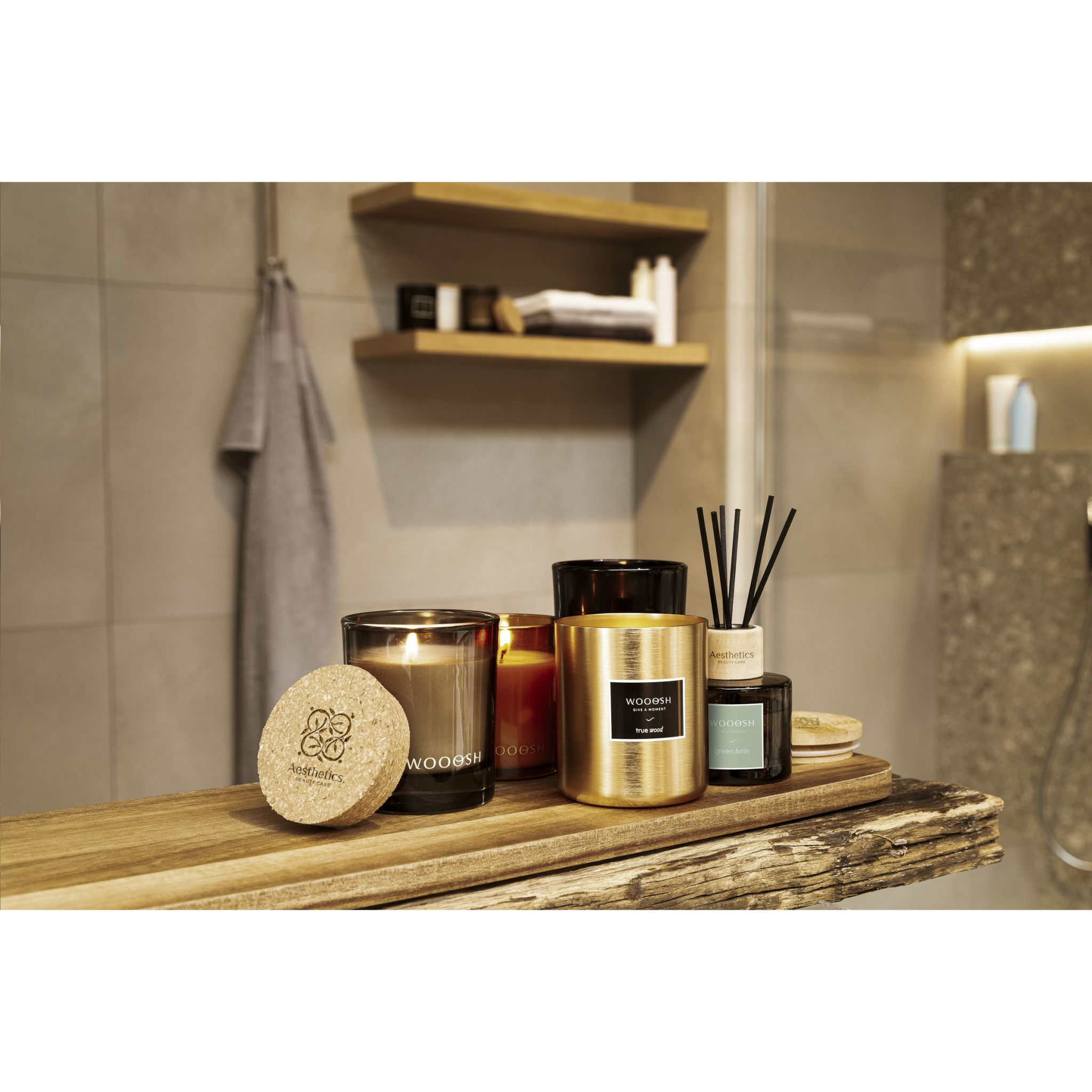 A decorative glass perfume bottle, with wooden accents from the Wooosh brand. This bottle is filled with wonderfully scented Green Herbs perfume oil. By placing the sticks in the perfume bottle, the perfume is absorbed and the oil gradually evaporates. The air fills with a spicy and natural aroma, which evokes a sense of harmony, tranquillity and relaxation. At the same time, the refreshing and pleasant scent is ideal when practicing yoga and meditation, but also beneficial in a wellness area, bathroom or living room. The intensity of the fragrance can be regulated by placing more or less sticks in the bottle. This bottle is filled with 75 ml of perfume oil and comes with 6 mini sticks and instructions for use. Each item is supplied in a luxurious Wooosh gift box.