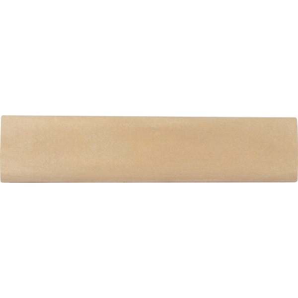 Environmentally friendly writing set made of wood, consisting of a blue-writing cardboard pen with plastic accents (non-replaceable refill), an eraser, an unsharpened wooden pencil, a sharpener, and a wooden ruler.