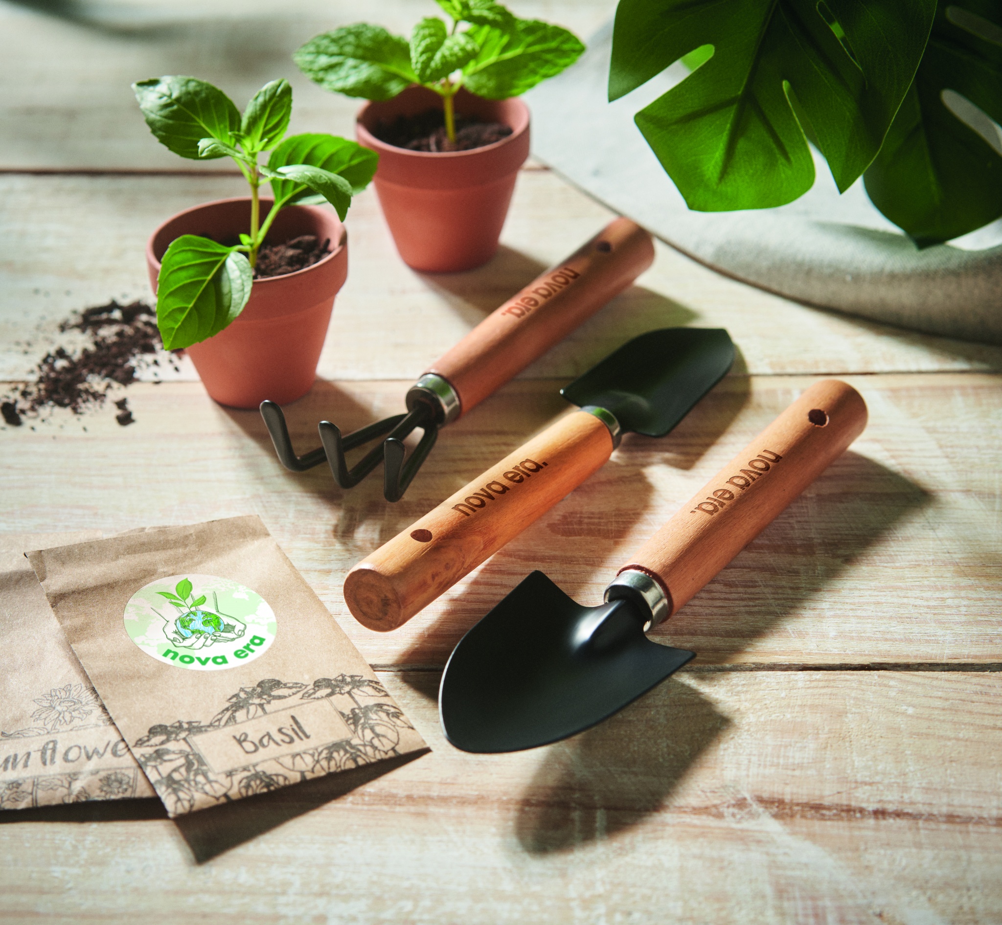 Logotrade firmakingituse foto: 3 aiatööriista RPET kotis