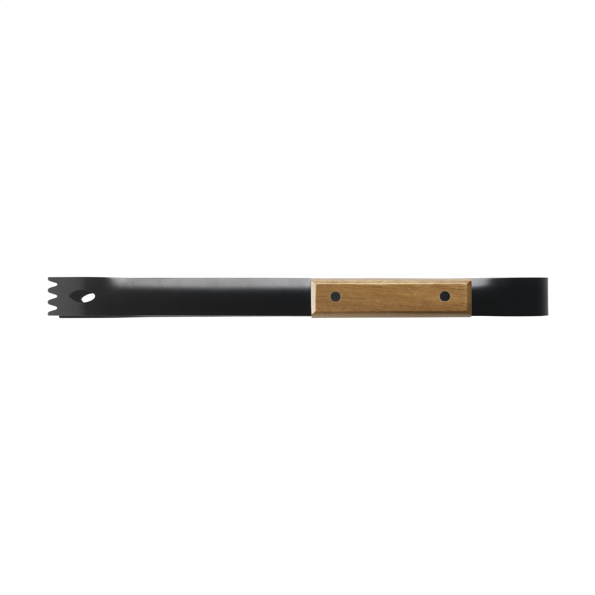 4-osaline grillikomplekt: spaatel, kahvel, nuga ja lihatangid. Roostevaba teras on kauni musta kattega ja tarvikutel on akaatsiapuust käepidemed. See šikk komplekt on 600D nailonist kotis.