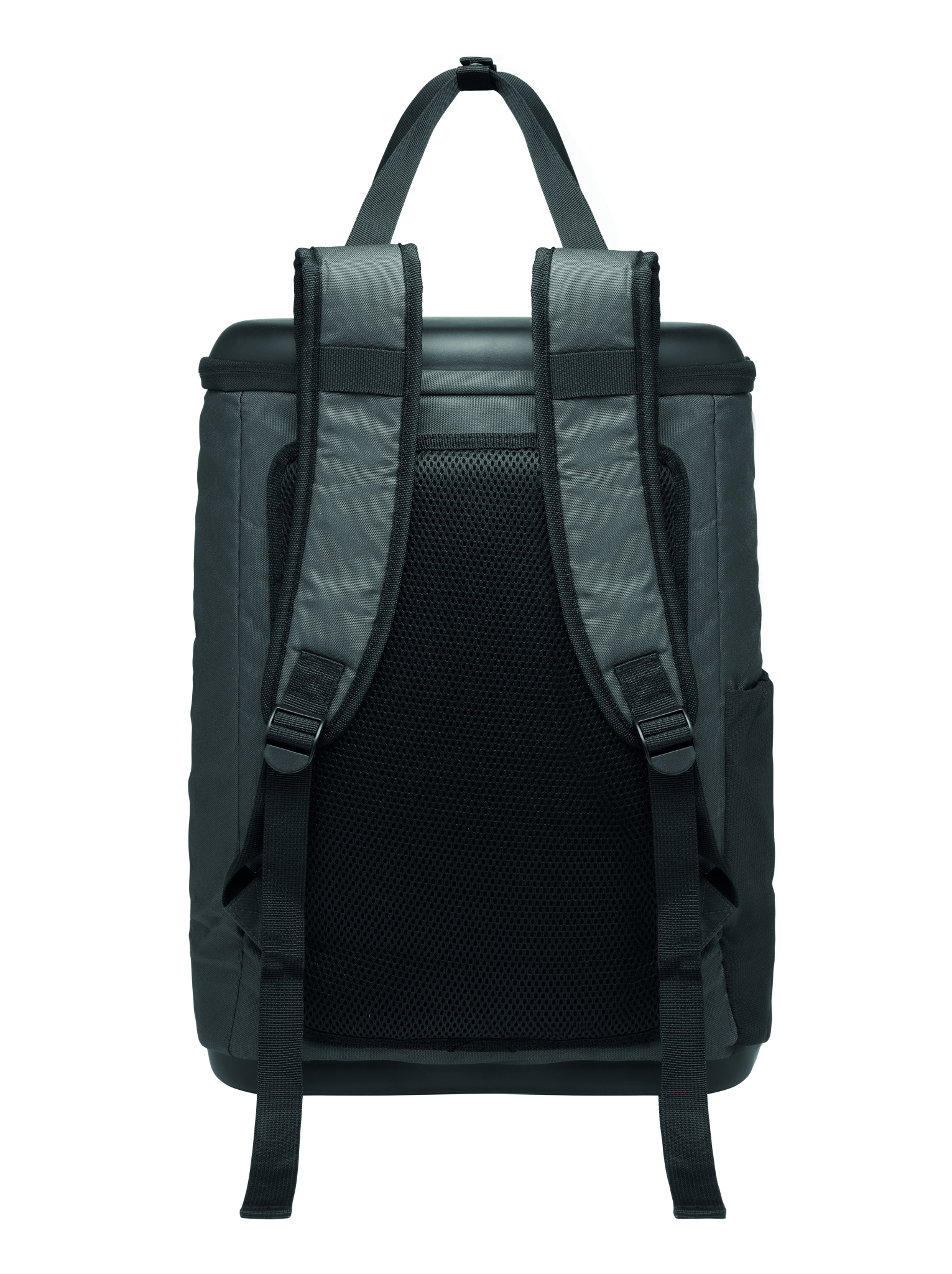 Vetthülgavast 600D RPET materjalist, PE-vahtisolatsiooni ja PEVA voodriga külmakott. Polsterdatud võrkkangast seljaosa, eesmise lukuga tasku ja külgedel asuvate võrkkangast taskutega. Mahutavus 20 l.