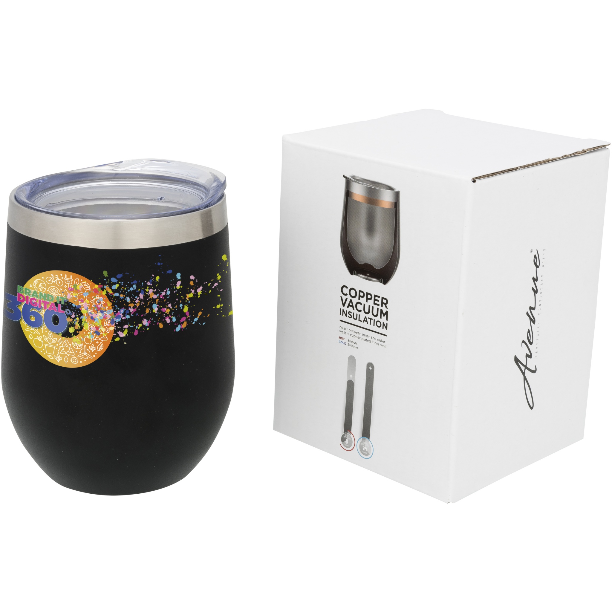 Corzo vasest vaakumisolatsiooniga tassil on vasest isolatsiooniga kaheseinaline vaakumkonstruktsioon, mis tähendab, et see hoiab joogid kuumana 6 tundi ja külmana 24 tundi. Konstruktsioon hoiab ära kondensaadi tekkimise trumli välisküljel. Lihtne rüübata, peale surutav kaas. Väliskorpusel on pihustuspulbervärvimine. Lai avaus mugavaks täitmiseks ja valamiseks. Maht on 350 ml. Esitatakse Avenue kinkekarbis.