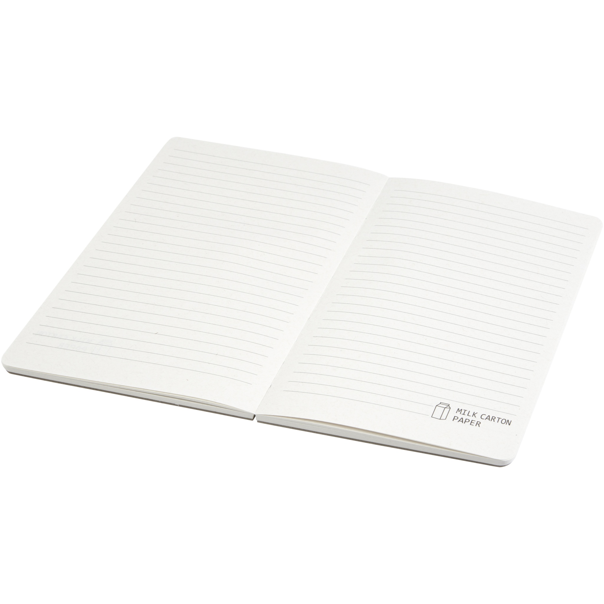 A5-formaadis tugiseljata sülearvuti 80 80 g/m² vooderdatud lehega, mis on valmistatud taaskasutatud piimapakkidest (kuni 70%). Kasutatud piimapakke kogutakse, sorteeritakse, töödeldakse ja muudetakse paberiks, muutes jäätmed tõeliselt kasulikuks.