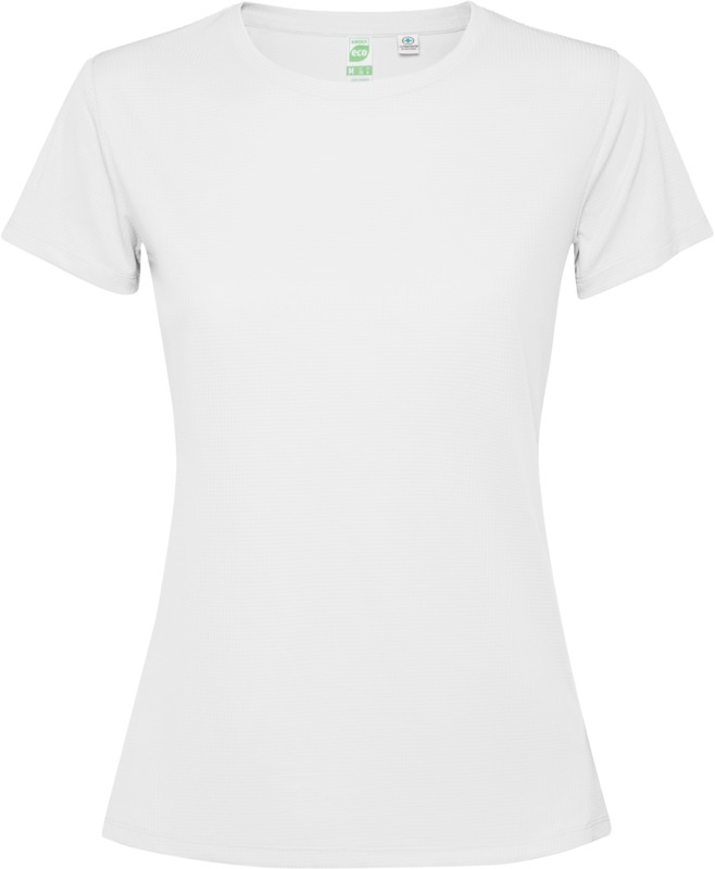 Lühikeste varrukatega liibuv tehniline t-särk naistele. Sobivate õmblustega krae. Tagumine alläär veidi pikem kui eest. Küljeõmblused nihutatud ettepoole.