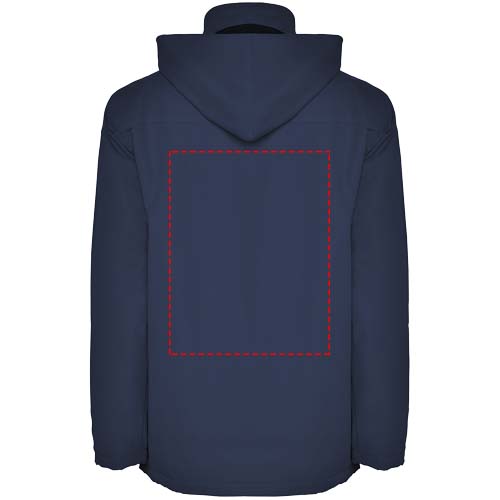 Polsterdatud veekindel jope. Keskne vormitud tõmblukk koos sobiva klapiga. Kõrge kaelus kokkupandava kapuutsiga. Tõmbluku ja klapiga küljetaskud. Rihmadega reguleeritavad kätised. Kaks takjakinnitusega sisetaskut. Siseviimistluse tõmblukk. Veekindel. Tuulekindel. Modell on 184 cm pikk ja kannab suurust L.