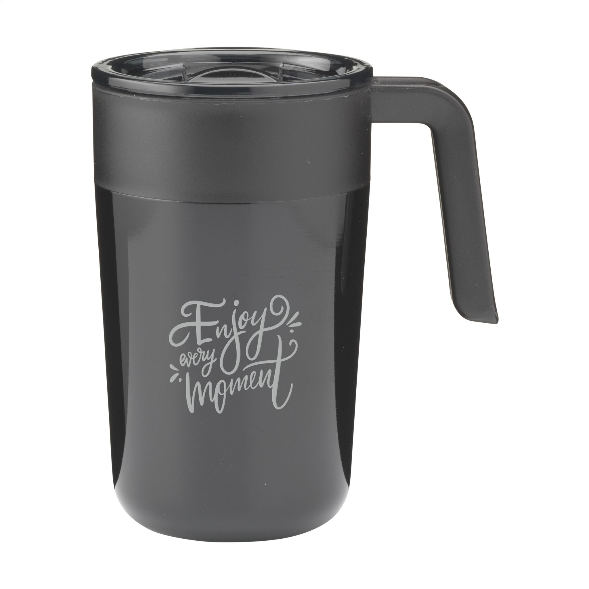Vau! Taaskasutatud roostevabast terasest ja PP-st valmistatud kaheseinaline termostops. Sellel kauni kõrgläikega viimistlusega tassil on plastikust käepide ja lihtsalt suletav lükand-/klõpsavaga kaas. Sobib külmade või kuumade jookide õigel temperatuuril hoidmiseks. RCS-sertifikaadiga. Kokku taaskasutatud materjal: 29%. Mahutavus 400 ml. Roostevaba terast saab mitu korda ringlusse võtta, säilitades samal ajal materjali kvaliteedi. Taaskasutatud roostevaba terase kasutamisel on vaja vähem uusi tooraineid. See tähendab väiksemat energiatarbimist ja vähem veekasutust. Vastutustundlik valik.