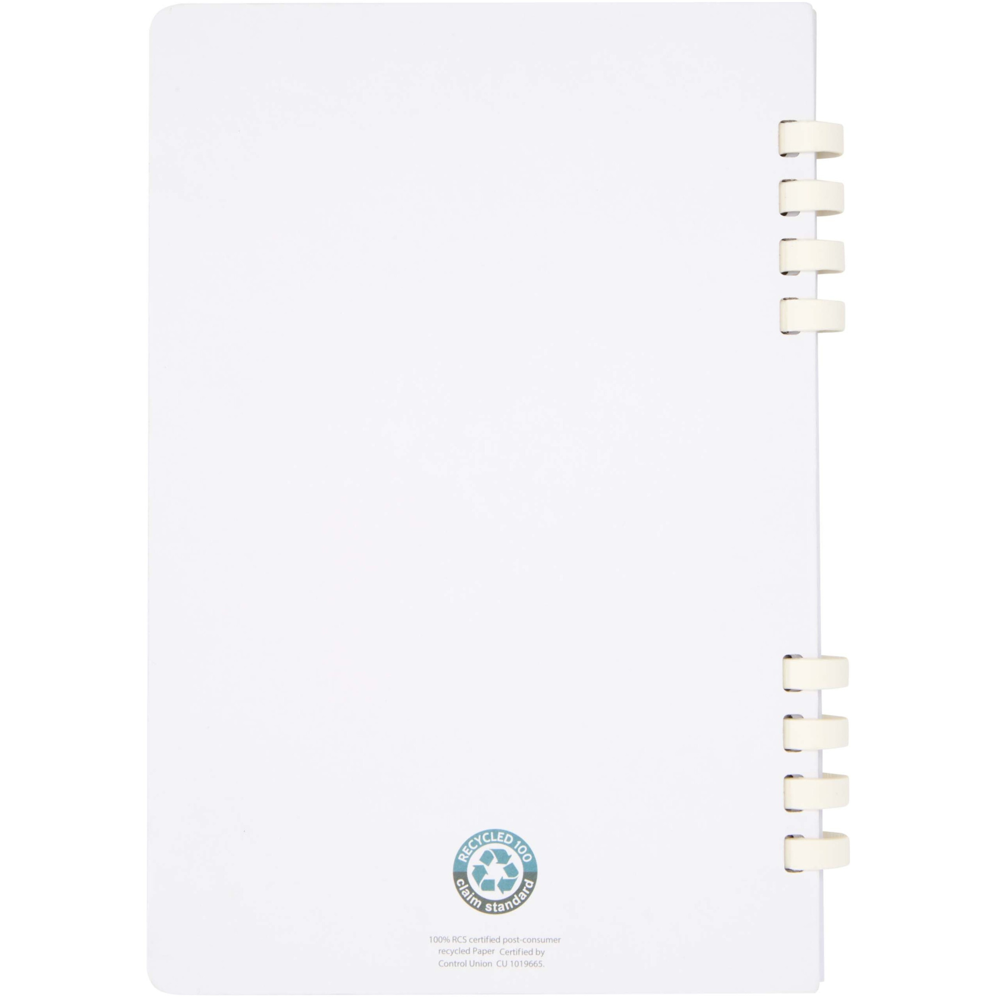 Fil A5 kõvakaaneline spiraalmärkmik 60 lehega on valmistatud 70g/m² RCS-sertifitseeritud taaskasutatud paberist. Täielikult taaskasutatud materjalidest valmistatud praktiline valik, mida on pärast kasutamist lihtsam utiliseerida ja taaskasutada.