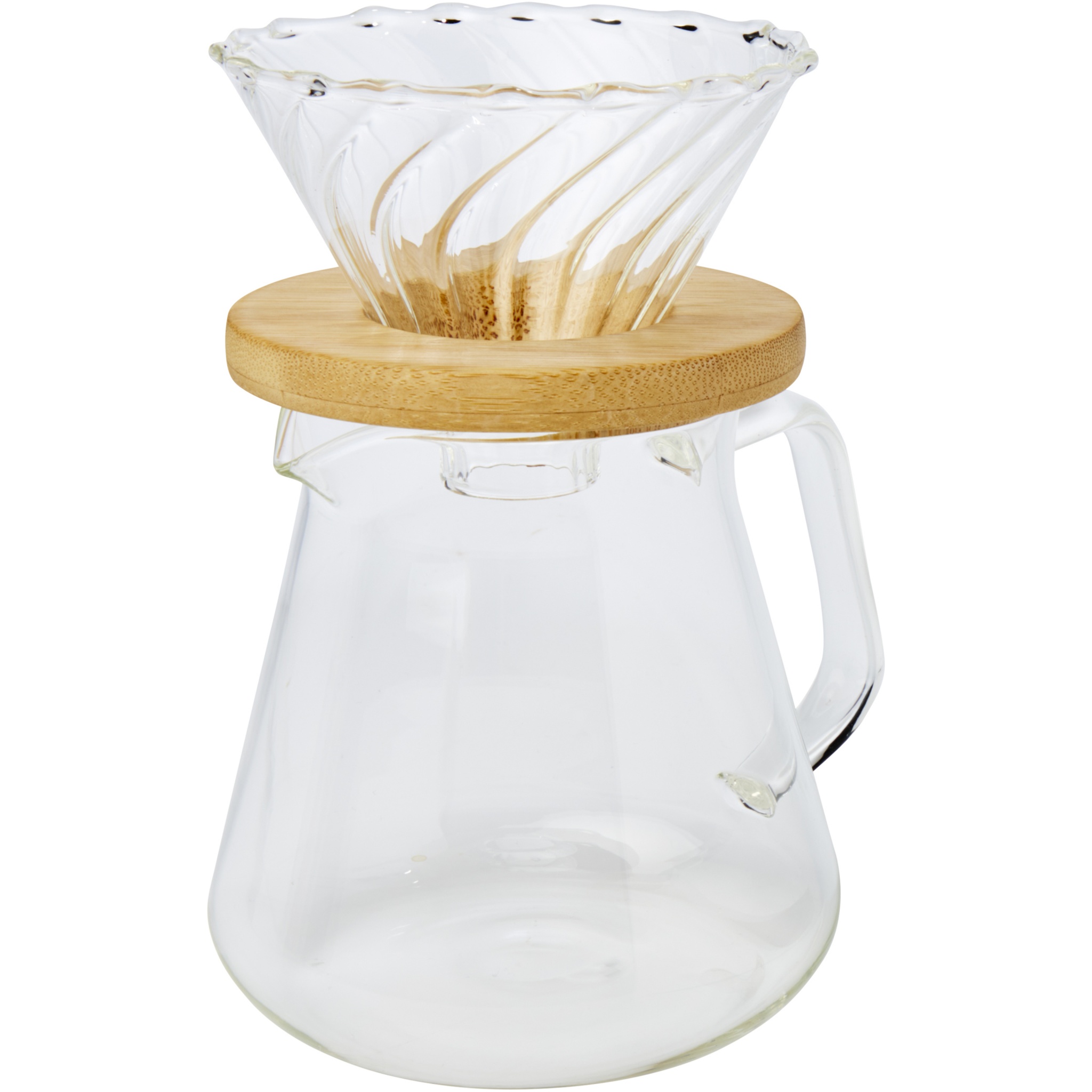 Kõrge temperatuurikindel klaasist espresso kohvimasin mahutavusega 500 ml. Filtrit saab eraldada. Töötab filterpaberiga. Bambusehoidja on pärit jätkusuutlikest, keskkonna- ja sotsiaalselt vastutustundlikest allikatest.