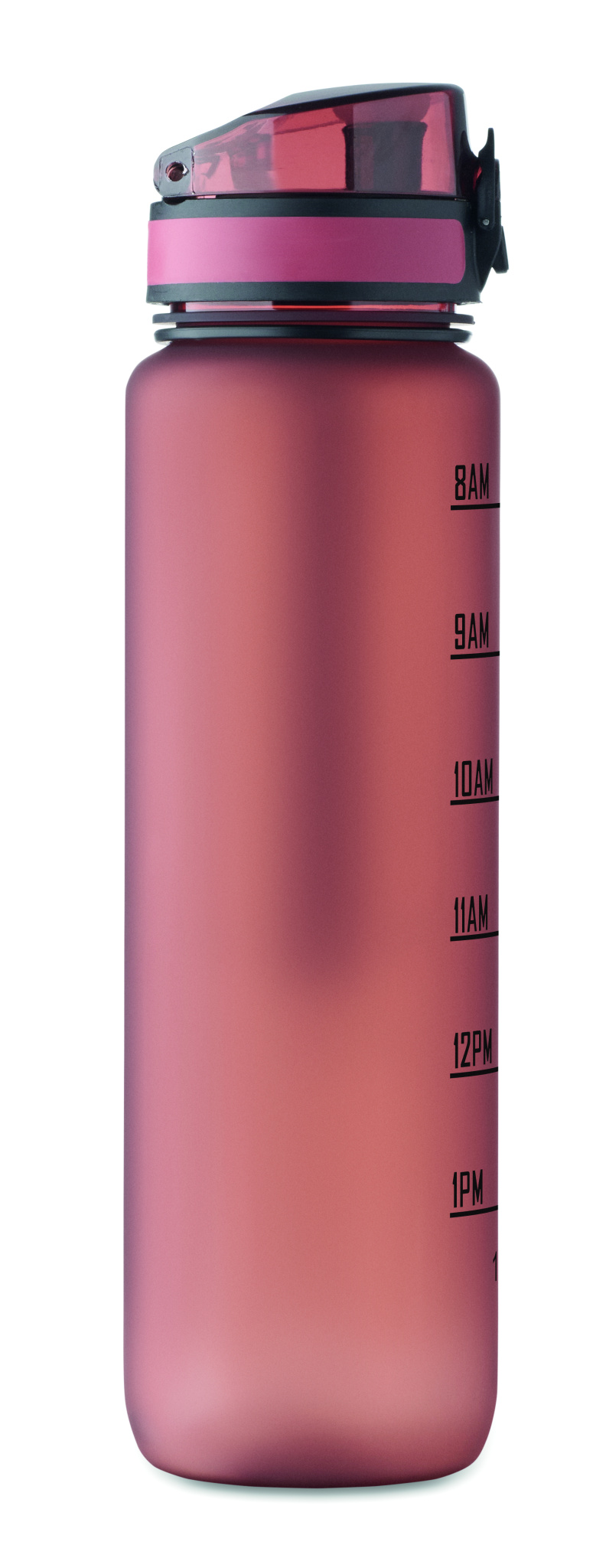RPET-materjalist spordi veepudel, motiveerivad ajamärgid, ühe käega avatav klapiga kaas, turvalukk ja kanderihm. Lekkevaba. Maht: 1 l.