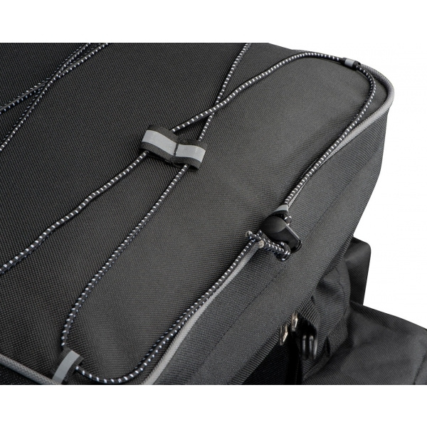 Kvaliteetne suur jalgratta sadulakott, mis kinnitatakse pakiraami külge. Paljude funktsioonidega, nagu elastsed rihmad ja mitmed hoiuruumid. Trükime teie logo kotile.