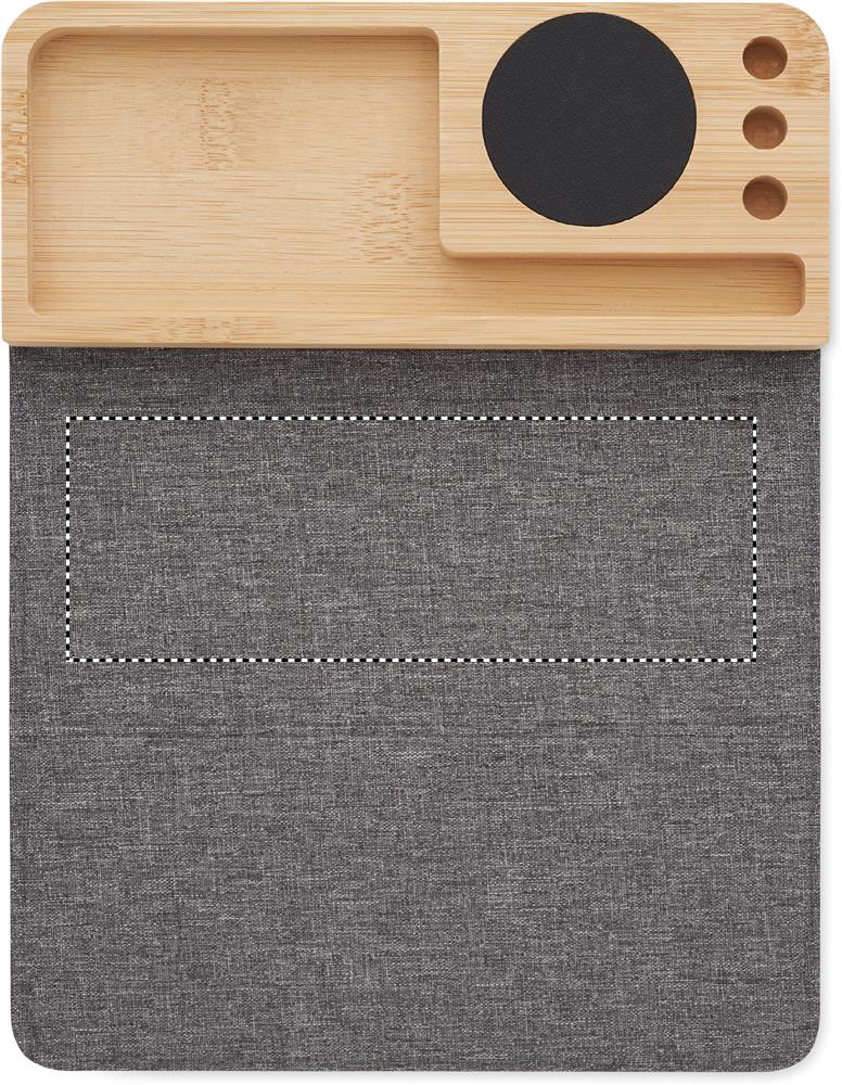 Bambusest juhtmevaba laadija ja lauaorganisaator telefonialuse, 3 pliiatsihoidja ja kokkupandava RPET-hiirematiga. Väljund: DC 9V/1,67A (15W). Ühildub kõigi QI-toega seadmetega, nagu uusimad Androidid, iPhone® 8, X ja uuemad.