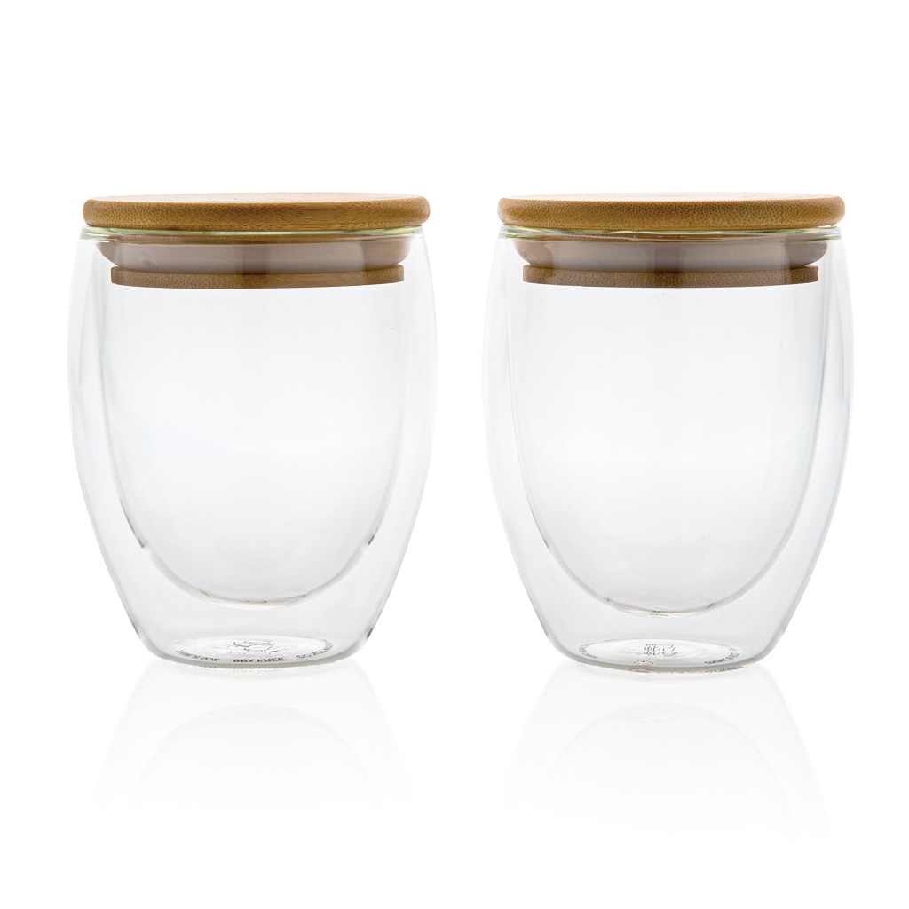 Logo trade firmakingi pilt: Kaheseinaline boorsilikaatklaas bambusest kaanega 250ml 2tk komplekt