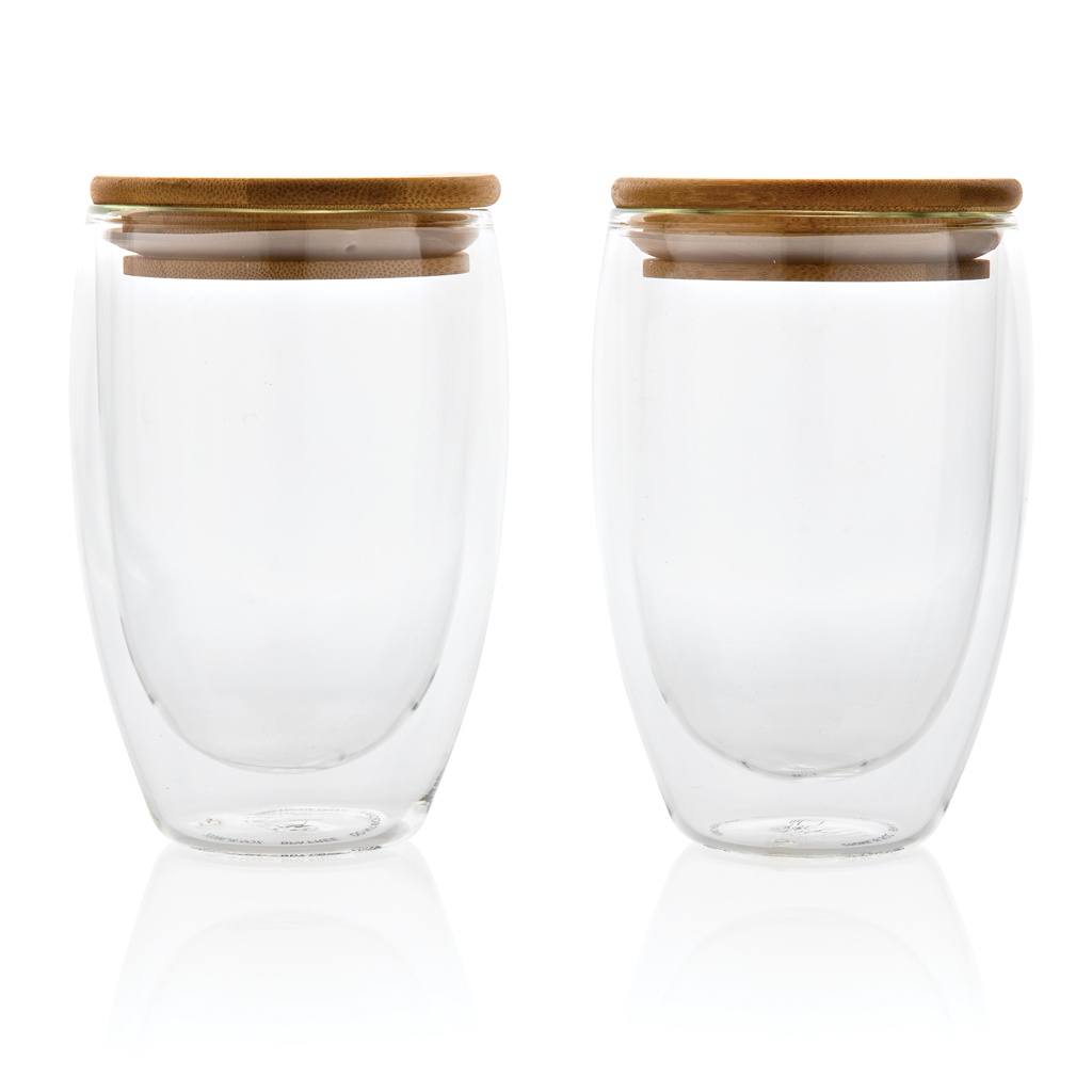 Logo trade reklaamtoote pilt: Kaheseinaline boorsilikaatklaas bambusest kaanega 350ml 2tk komplekt