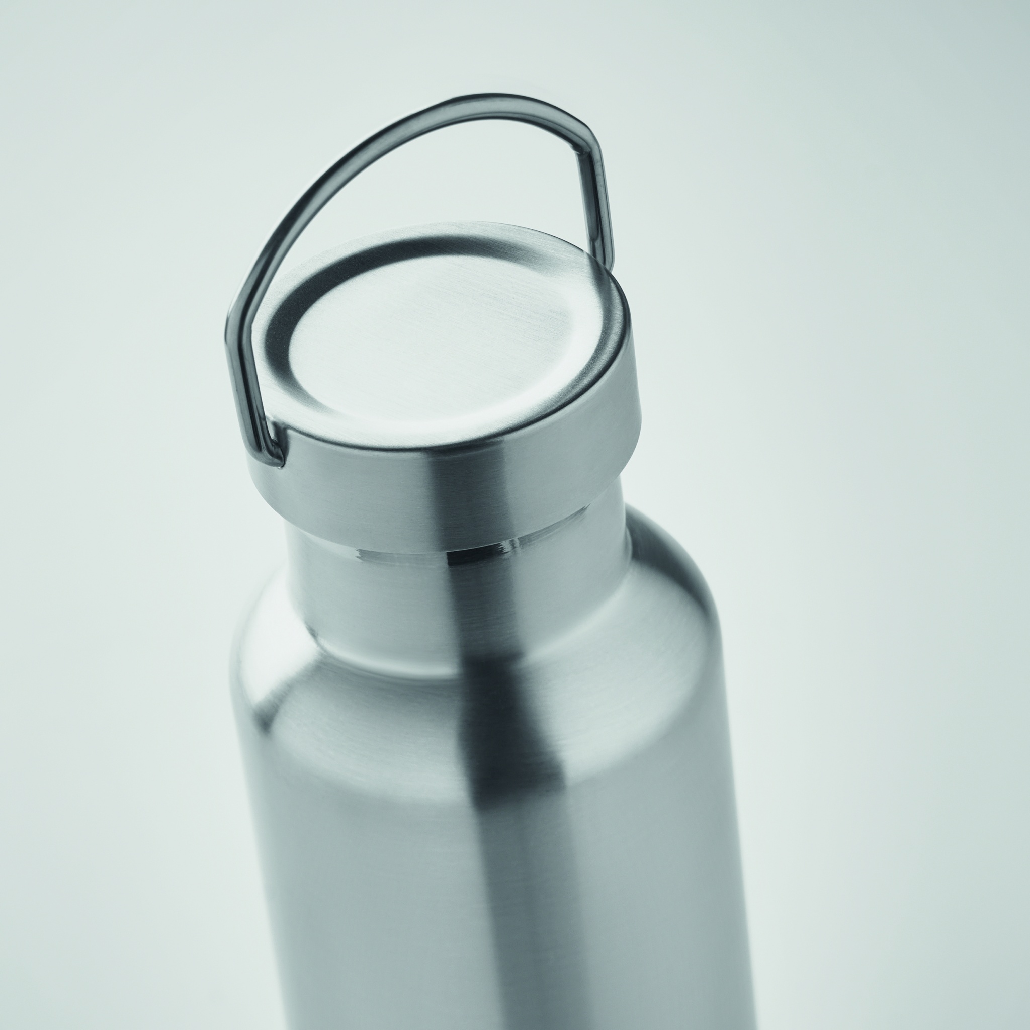 Kaheseinaline vaakumpudel taaskasutatud roostevabast terasest (90% taaskasutatud roostevaba teras ja 10% roostevaba teras) käepidemega kaanega. Lekkevaba. Mahutavus: 500 ml.