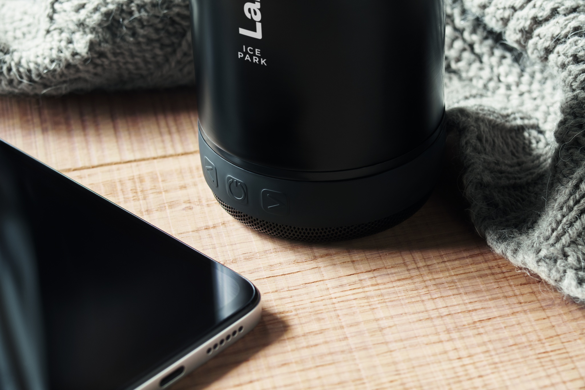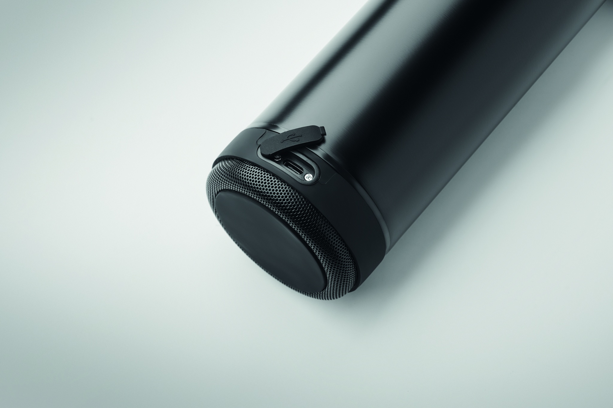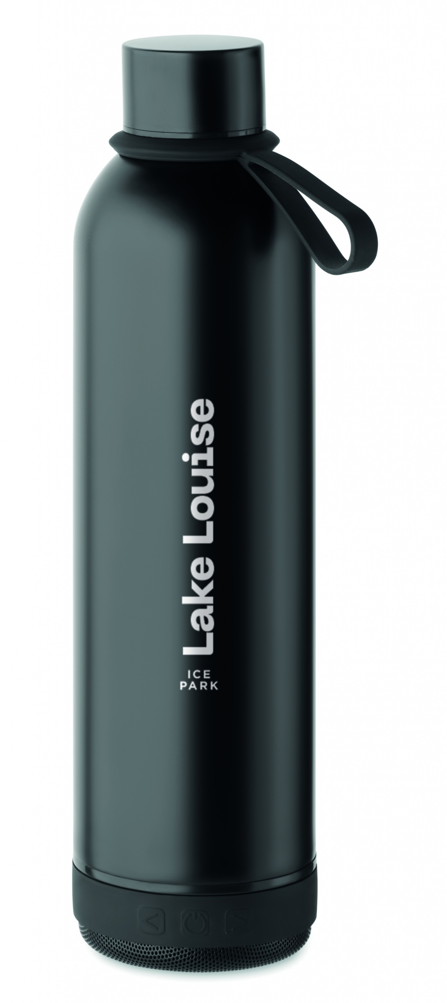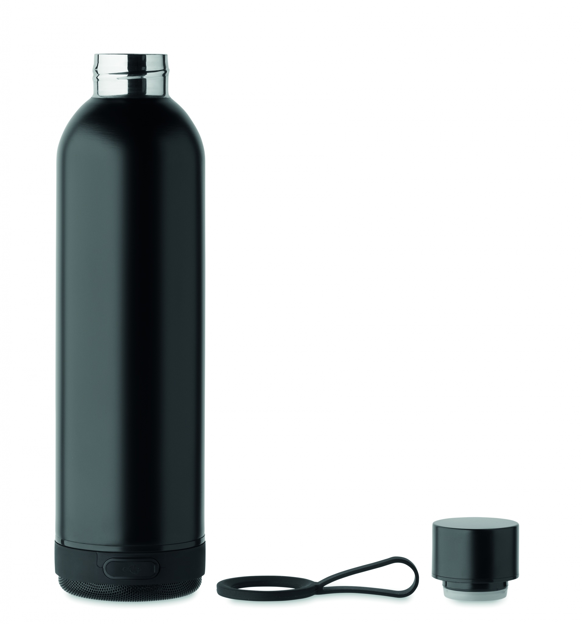 Taaskasutatud roostevabast terasest (90% taaskasutatud roostevabast terasest ja 10% roostevabast terasest) topeltseinaga vaakumisolatsioonipudel ja silikoonist kandesang koos eemaldatava 3W juhtmevaba kõlariga. Mahutavus: 500 ml. 500 mAh aku. Eemaldage puhastamiseks kõlar. Lekkevaba.