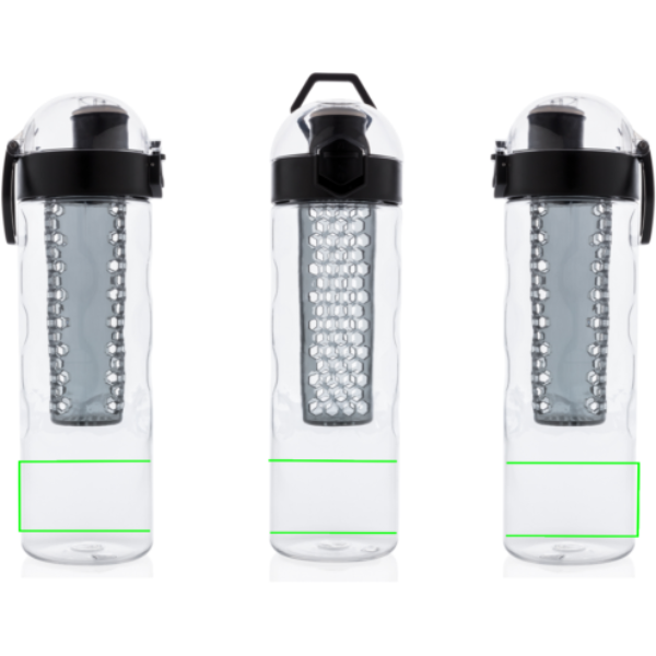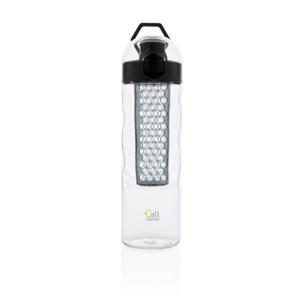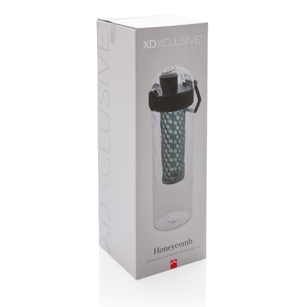 Lisage oma veele mõned tervislikud puuviljamaitsed. See kärgstruktuuri detailidega disainpudel pakub mugavat ühe käega joomist. Vajutage nuppu ja kaas avaneb. Seal on spetsiaalne lukustusmehhanism, mis takistab kasutajatel kogemata nuppu vajutamast. Kaasa arvatud kandesang. See infusioonipudel on valmistatud vastupidavast ja uuenduslikust tritaanmaterjalist. Lõhnatu ja 100% BPA-vaba. Sisu 700ml. Registreeritud disain®