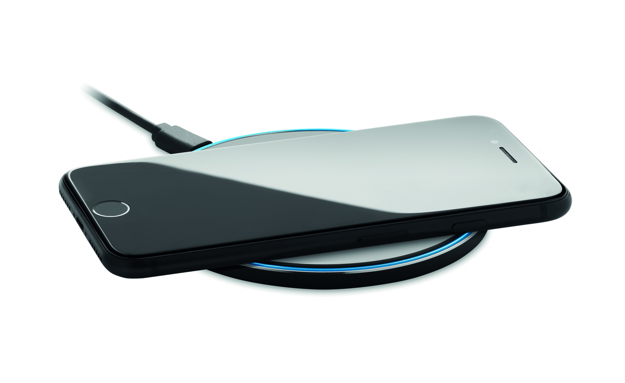 Alumiiniumist juhtmevaba laadija 10W, peal klaas. Ühendage seade arvutiga, asetage nutitelefon sellele ja laske sellel laadida. Sinine tuli laadimise ajal. Väljund: DC 9V/1.1A. Ühilduvad uusimad androidid, iPhone® 8, X ja uuemad.