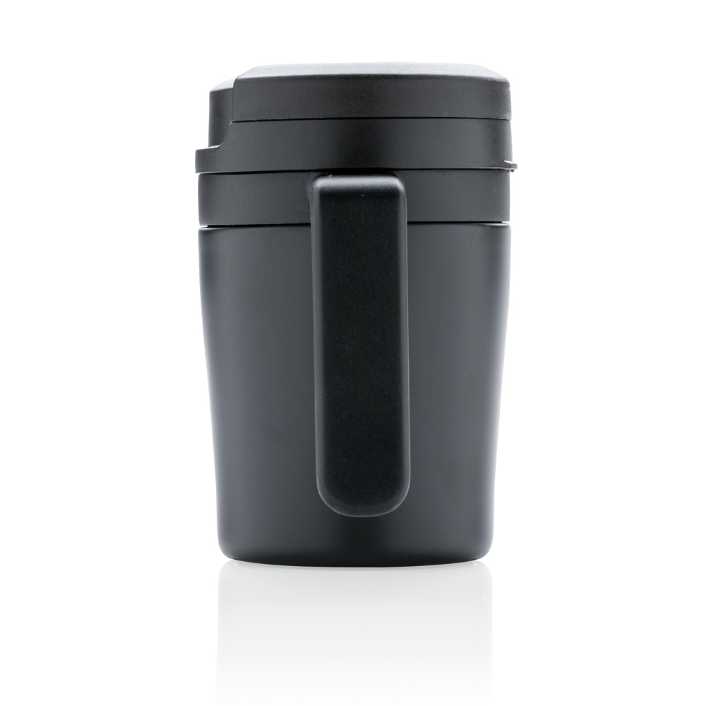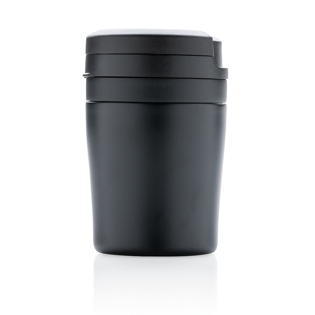 Vähem on rohkem. Kuna see on 8 cm kõrgune, on see ideaalne topeltseinaga kruus teie kohvimasinale. PP sisemine. Suurepärane Ristretto, Espresso ja Lungo kohvi jaoks. Hea käepide ühe käe joomiseks. Kergesti keeratav lekkekindel kaas. Ainult käsitsi pestav. Sisu 160ml. Registreeritud disain®