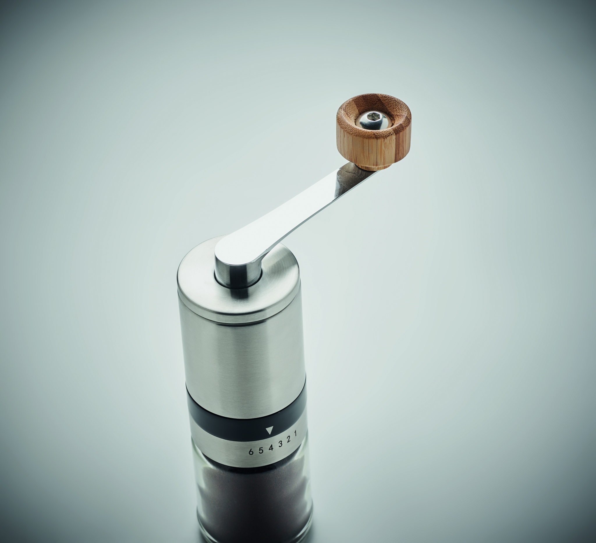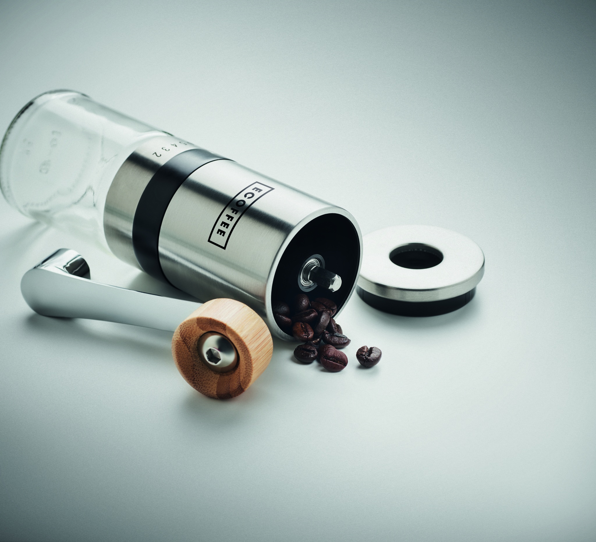 Kohvikomplekt. Kaasa arvatud klaasist ja roostevabast terasest kohviveski ning bambusdetailidega käsitsi keraamiline kohviveski. Mahutavus: kohvik 350 ml, veski 100 ml.