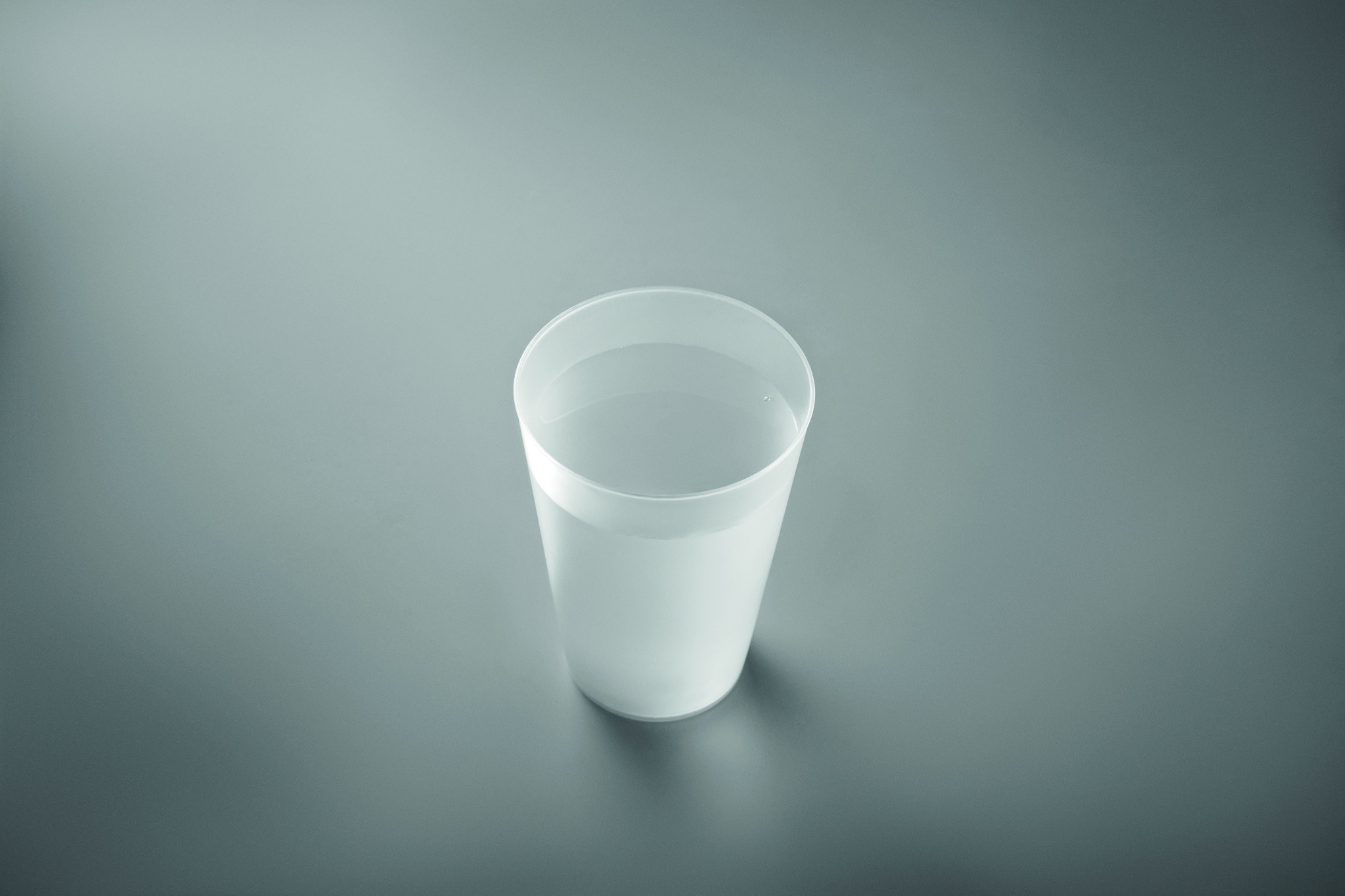 Korduvkasutatav jäätunud viimistlusega PP ürituse tass festivalidele. Mahutavus: 300 ml.