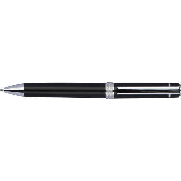 Alumiiniumist keeratav pastapliiats sinise kirjutussüsteemi täidisega. Kroomitud aplikatsioonid ja sädelev dekoratiivrõngas annavad pastakale erilise välimuse. Teie logo on graveeritud klipi paremale küljele.
