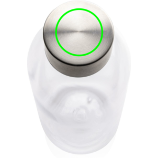 Lekkekindel veepudel metallist kaanega, läbipaistev