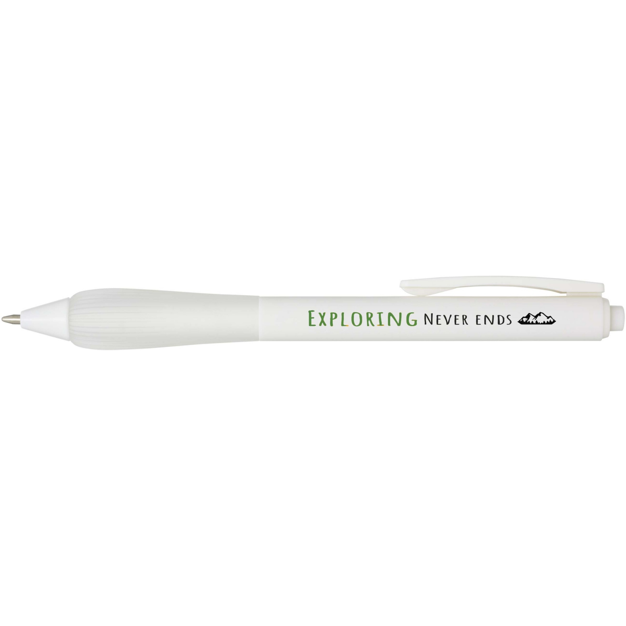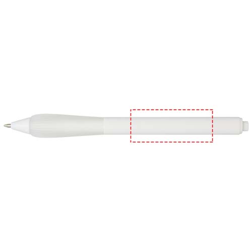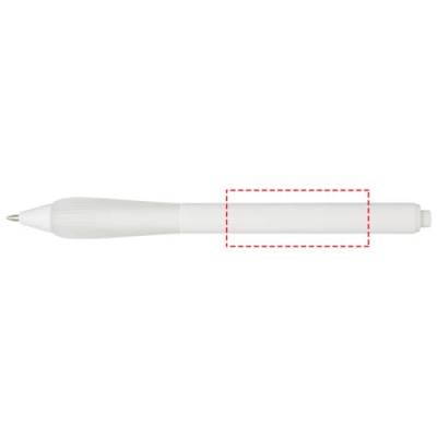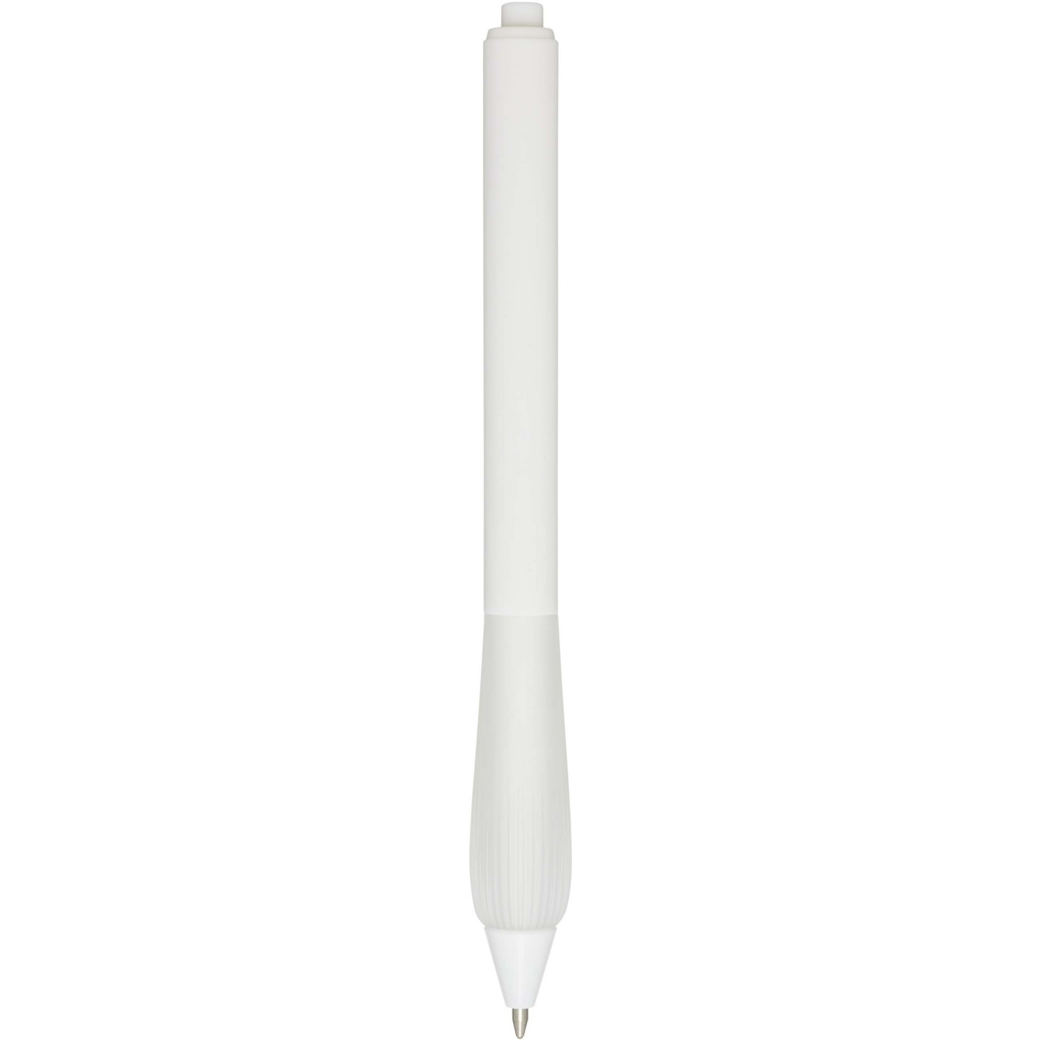 Taaskasutatud plastist pastapliiats kummeeritud silindri ja TPR-st käepidemega. Tindi värvus: sinine. Kirjutamise pikkus: 1000 meetrit. Otsa suurus: 1,0 mm.