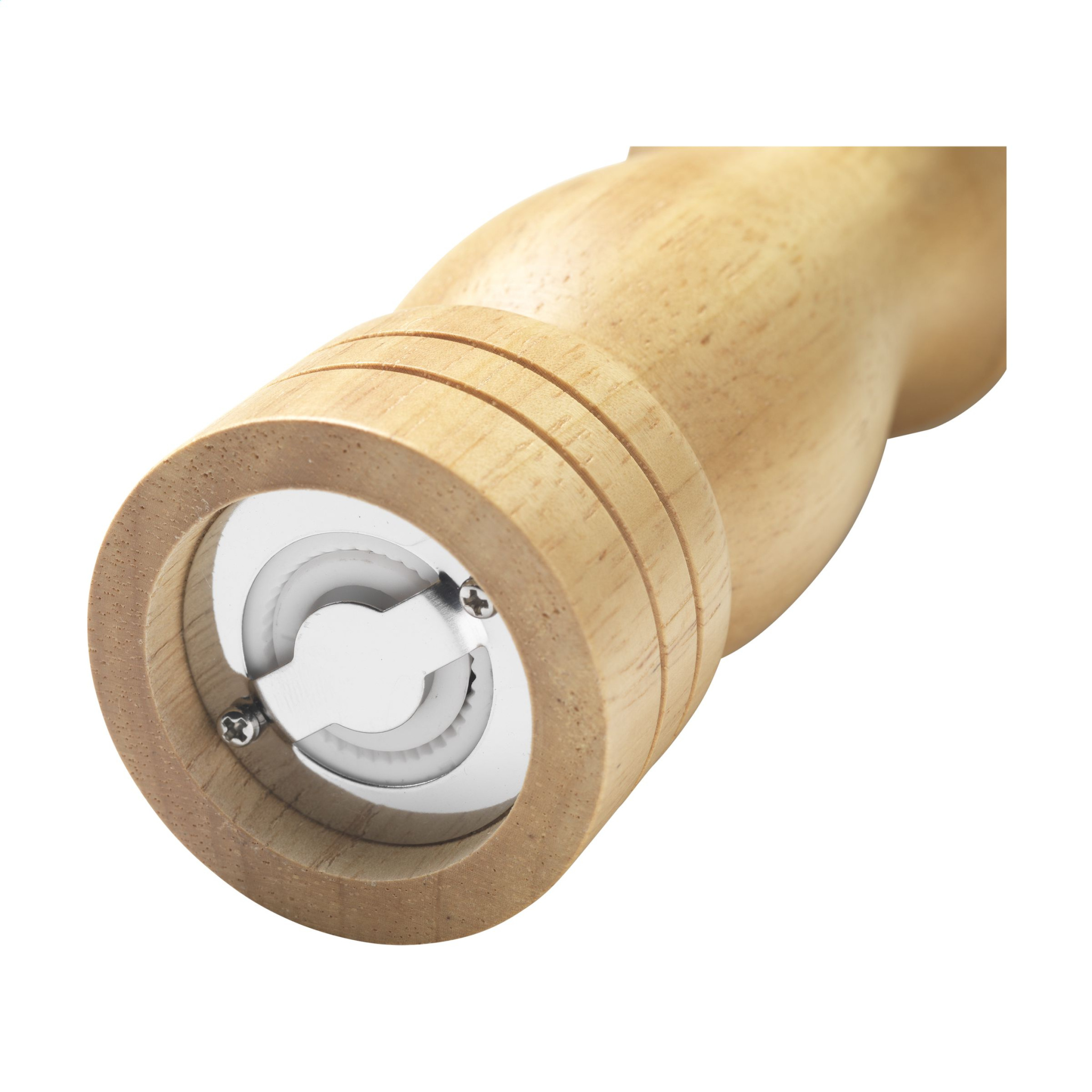 See komplekt sisaldab ühte soola- ja pipraveski, mõlemad on valmistatud kummipuust. See klassikaline disain on endiselt väga populaarne ese. Jahvatuskettad on keraamilised, mis tagab, et need veskid on piisavalt võimsad jämedate terade jahvatamiseks. Lihtne uuesti täita. Esemed tarnitakse komplektina pruunis pappkarbis.