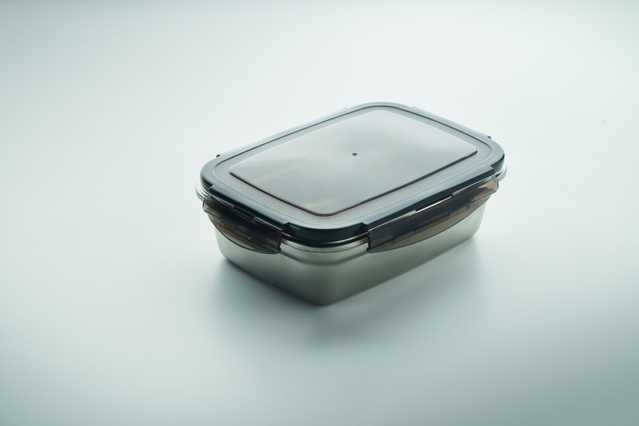 Taaskasutatud roostevabast terasest lõunasöögikarp taaskasutatud PP kaanega ja 4 küljekinnitusega. Mahutavus: 850 ml.