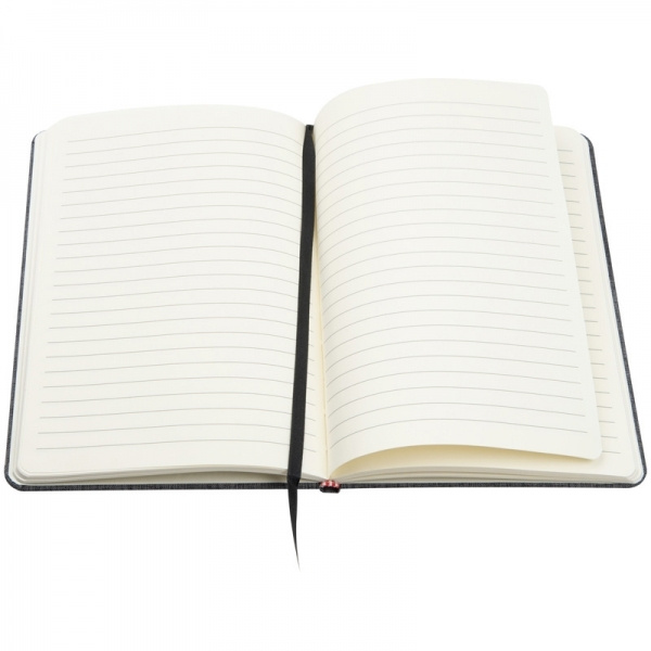 A5-formaadis sülearvuti stiilse 300D lõuendist polüesterkaanega, musta kummist sulguri ja järjehoidjaga. 160 joonelist lehte. Trükime teie logo kaanele.