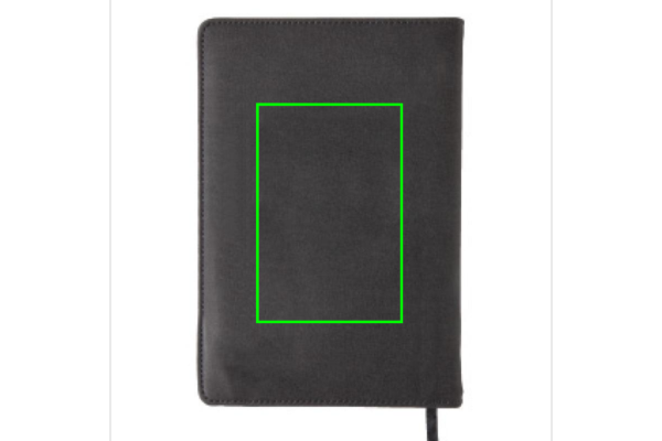 Kaetud polüuretaanist sülearvuti kate eesmise telefonitasku (14 x 10 cm), pliiatsitasku ja ühe põhitaskuga. Must lehejagaja ja sees 160 lehekülge 80g/m2 paberit. Seda märkmikukaant saab lõputult kirjutamiseks uuesti kasutada uue A5-formaadis märkmikupaberiga.