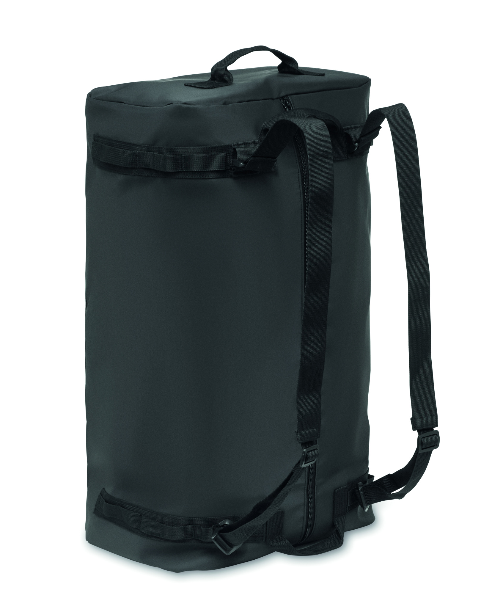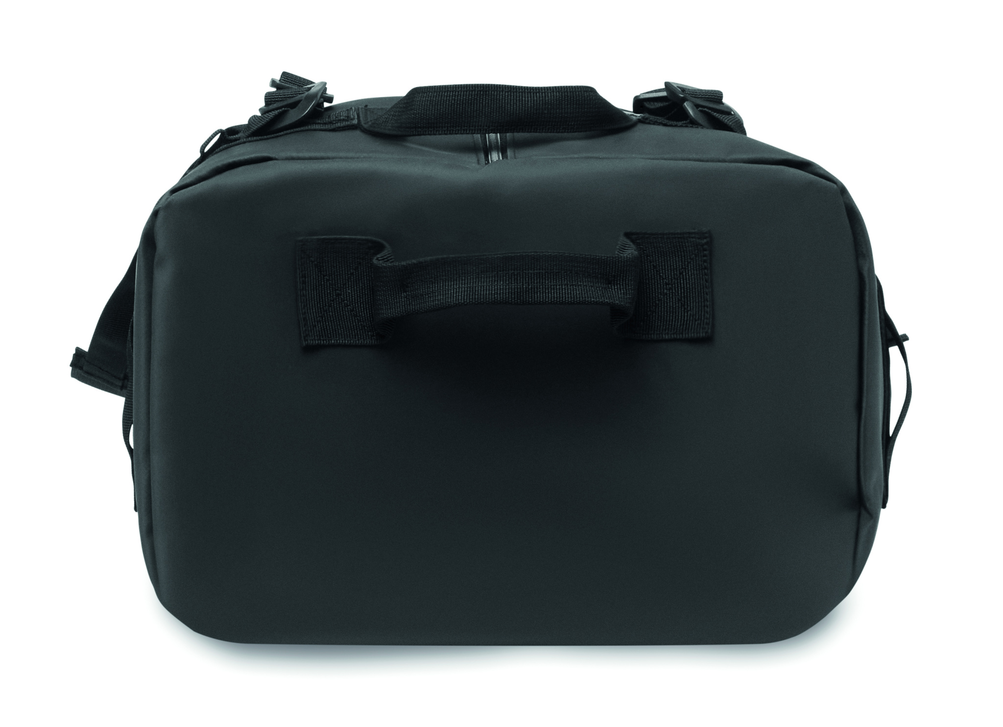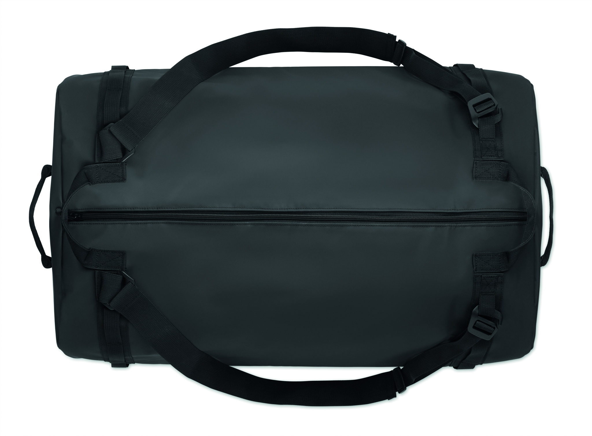 Suur kott, spordi- või reisikott, mida saab kasutada ka seljakotina, 50C presendist, lukuga ja sisemise sahtliga. Sellel on eemaldatav ja reguleeritav õlarihm ning RPET-vooder.