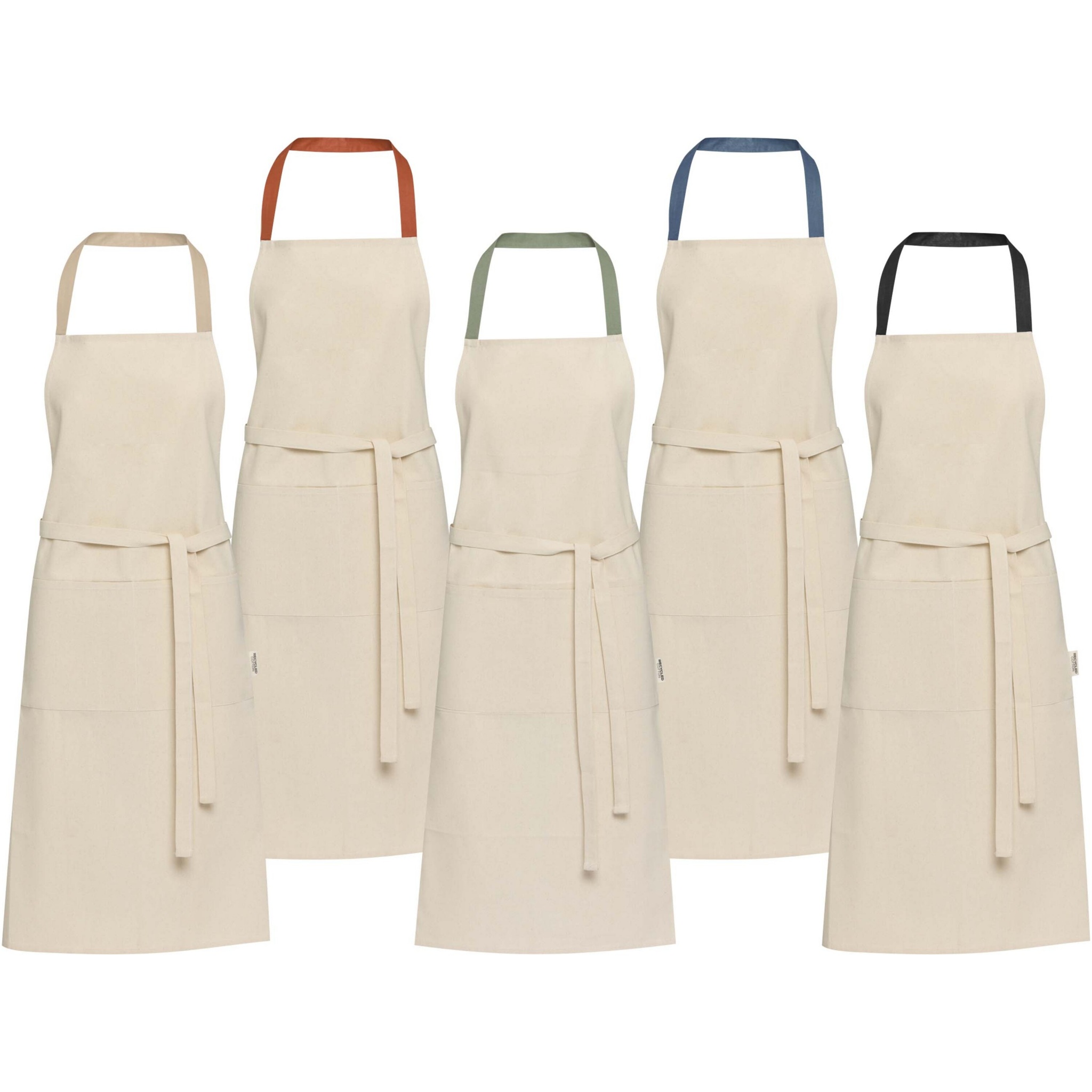 Nia põll on valmistatud 100% GRS sertifikaadiga 200 g/m² taaskasutatud puuvillast. Naturaalse puuvillase värvi ja kontrastse kaelasilmusega põll kaitseb teie riideid toiduvalmistamise ajal. Nia põllel on kaks kõrvuti asetsevat taskut, mille kombineeritud suurus on 45 x 20 cm, ja 1 meetri pikkune lipsukinnis, mis tagab teie köögis nii praktilisuse kui ka stiilsuse.