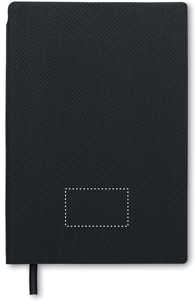 Struktureeritud PU-kaanega A5-formaadis märkmik koos ABS-i keerduva pastapliiatsiga. 160 joonega lehekülge taaskasutatud paber (80 lehte).