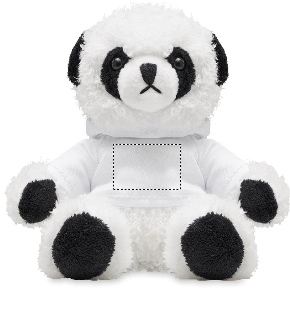 Pandakaru plüüs kannab kapuutsiga kampsunit. Ideaalne sublimatsiooniprintimiseks.